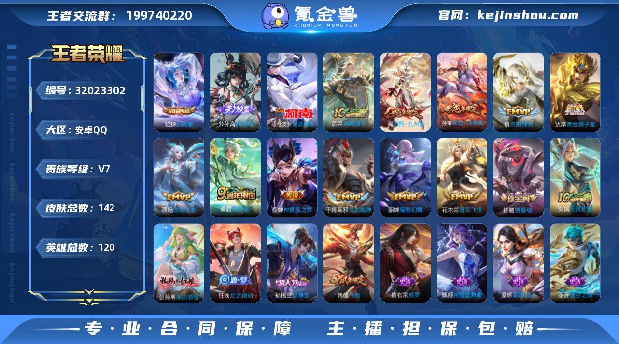 【王者荣耀】珍品无双0 典藏1 无双1 珍品传说1 传说13 史诗49 英雄120 皮肤142 贵族7级 荣耀典藏:幻阙歌__无双皮肤:离恨烟__珍品传说:怪盗基德__传说皮肤:鸣野蒿|炽阳神光|仲夏夜之梦|久胜战神|黄金狮子座|猫影幻舞|冠军飞将|游龙清影|孙尚香-末日机甲|乘龙·淬吴钩|冥王哈迪斯|愿照·九州拓|神树通天__稀有限定:至尊宝|飞衡|蔷薇恋人|梁祝|古海寻踪|海滩派对|海盐诗旅|皇家上将|剑破天穹|江河有灵|迷踪丽影|魔术师|擒涛扼浪|燃音魔法|探海日志|天穹祈灯|无心|阴阳师|缤纷独角兽|冰雪圆舞曲|苍穹之光|大乔-猫狗日记|德古拉伯爵|伽罗-琥珀纪元|功夫厨神|鬼剑武藏|唤灵魅影|节奏热浪|龙骑士|魅力维加斯|梦奇-顽趣|女仆咖啡|偶像歌手|青蛇|圣诞狂欢|水果甜心|孙策-猫狗日记|天秀·启明|鹰眼统帅|逐浪之夏|紫霞仙子|百里守约-百相守梦|老夫子-百相守梦|噬灭天穹|敬我三分|破空之剑|蔡文姬-夏日便利店|虞姬-夏日便利店|天穹之誓|修罗|曙光守护者|心灵战警|千年之狐|心灵骇客|茶境仙|星界战将|谧流熔炉|孙悟空-神迹守卫|访茗客|灵卜魔法|刘禅-鸭鸭历险记|沈梦溪-鸭鸭历险记|龙之律动|虚灵犬护|逆浪荇歌|黄忠-百相守梦|涂山容容|荣光之誓|万灵启世|鹤鸣心笺|周瑜-线条小狗|锁墨魂__优质皮肤:尼罗河女神|一千零一夜|午夜歌剧院|露花倒影|碧珀绯影|冰刃幻境|绯红之刃|赤焰之缨|精灵王|剑舞者|花间舞|花见巫女|灼热之刃|怪诞之夜|潮玩探月行|次元突破|鲨炮海盗猫|野性能量|虹云星官|功夫老勺|兔女郎|死亡骑士|少女阿狸|忍·炎影|街头霸王|教廷特使|零食大作战|危途狂花|拳王|白色死神|星梦巡礼|雾都夜雨|铁骨偃魂|龙腾万里|牛魔-西部大镖客|乓乓大师|蒙犽-归虚梦演|太乙真人-圆桌骑士|沉稳之力|程咬金-群星魔术团|完美运算|熔金海岸|春野之旅|苍林狼骑|劲辣红锅|特工战影|妄想特派|春野闲踪|灵野札记|锦麟游梦|踏浪烽翎|克喵|径...