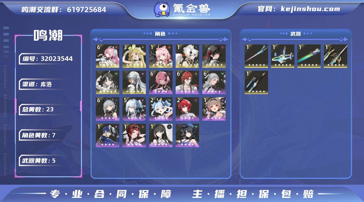 6+1爱弥斯,00千咲,有168的爱弥斯摩托。有KFC联动翅膀和摩托三个常驻武器:玻色星仪,千古伏流,源能机锋