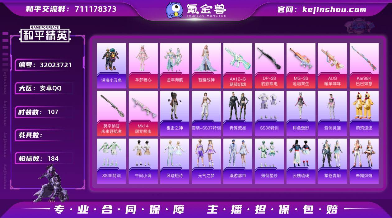 【0载具 7特效枪 3粉装 184枪皮 107套装】热力值5w -深海小丑鱼-金丰海韵-智耀战神,羊梦糖心 AUG-暖羊咩咩,Kar98K-巳巳如意,莫辛纳甘-未来领航者,Mk14-甜梦熊击,AA12-G-萌骑幻想,DP-28-豹影疾电,MG-36-沧焰双生 甜梦悠航飞行器,马上有福飞行器,炫彩糖果飞行器,编号:QNLQT43