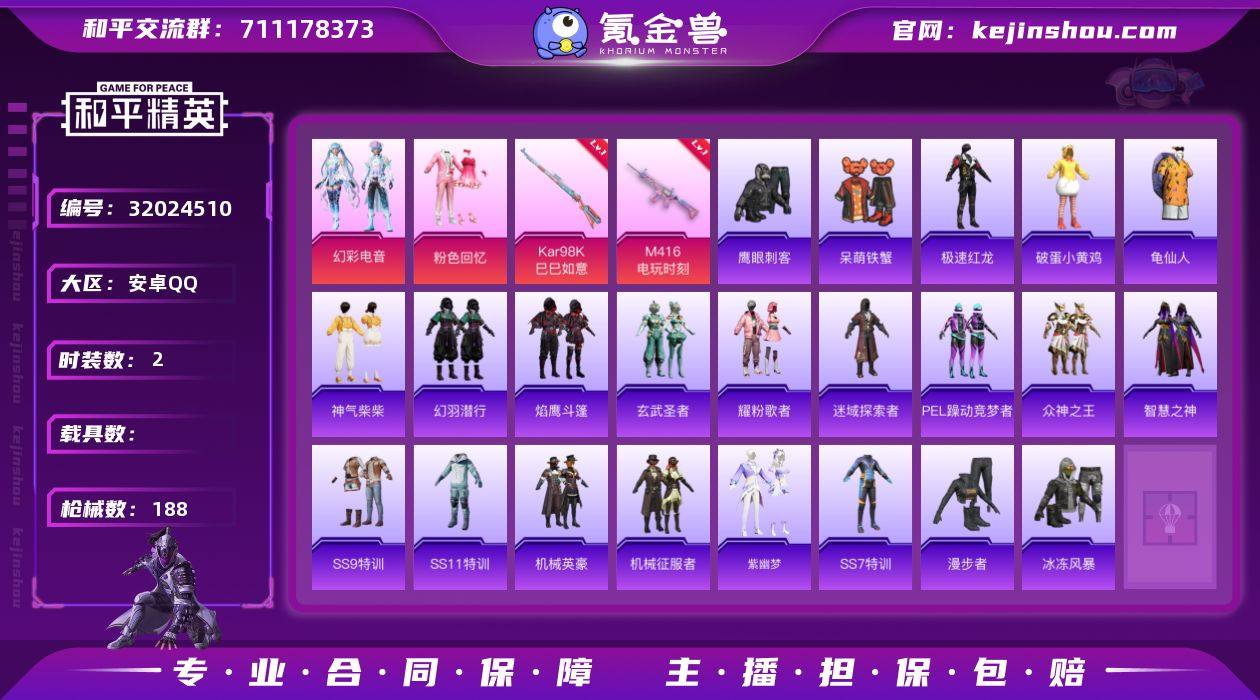 DSH2320安卓手Q-2粉装-4特效枪-138套装-188枪皮-0王牌印记-不朽星钻Ⅲ-53339热力值【2粉装】粉色回忆,幻彩电音【4特效枪】AKS-74U-森灵之息[5级],Mk14-福马献瑞[1级],Kar98K-巳巳如意[5级],M416-电玩时刻[5级]【4飞行器】绝色倾城飞行器,破刃行动尾迹,马上有福飞行器,古堡领主飞行器【1背包】百万伏特背包【320其它衣服和枪皮】黄色名流,牛气冲天,蓝冰羽,猛禽,蓝彩潮人,格斗先锋,机械征服者,特训学院,竞技达人朋克,竞技勇士朋克,破蛋小黄鸡,旭日情侣,福星高照,破晓战魂,SS15特训,耀粉歌者,深蓝冒险家,粉日山川,元素星魂,SS36特训,鹰眼刺客,PEL躁动竞梦者,滨海假日,灼焰舞者,SS17特训,智慧之神,萌趣绒叽,跃动心情,呆萌铁蟹,SS5特训,红色运动,深蓝色名流,大橘大利,SS12特训,都市魅力,完美偶像,游猎者,香桃花海,逆风勇士,SS28特训,探宝勇士,霓虹街区,SS8特训,画境星梦,军械专家,SS33特训,刚毅裁决者,SS23特训,黑色伏地魔,云霞荷露,迷域探索者,玄武圣者,SS9特训,猎鹰,长空猛禽,潮流炫酷,老实芭蕉,战术大师,角色-蜜桃派对,黄色伏地魔,SS24特训,SS10特训,竞技名士,懵萌河马,童真绒兔,冰川特警,红釉青花,漫步者,吉莉礼服,冷焰舞者,SS18特训,冰川格斗者,原初圣火,幻羽潜行,极速红龙,牛气满满,夏日倾情,橘黑制服,街头潮人,机械英豪,耀眼新星,森林游猎者,飞行日记,酒红色名流,SS14特训,海盐绵绵冰,众神之王,狙击之神,SS13特训,北国孤狼,福马献瑞,焰鹰斗篷,龟仙人,SS21特训,夏日音浪,神气柴柴,阳光菠萝,暗金炫舞,幻影武者,战地督导,龙魂突击队,SS37特训,马上有钱,冰冻风暴,SS20特训,涂山之恋,麻辣教官,SS22特训,星渊小夜曲,青翼流星,白色伏地魔,湖蓝色名流,SS7特训,幻世战舞者,绮丽涂鸦,雨林探路者,魅力单车,缤纷果语,SS11特训,雨过天青,雪绒豹,紫幽梦,青年教官,蓝色运动,冰河战士,黄色运动,SS16特训,雪山精英