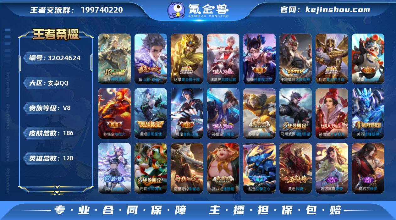 XS67 安卓Q-V8-荣耀黄金I段位-128英雄-186皮肤-1典藏英雄-11传说-63史诗 【英雄全皮】:猪八戒全皮 【荣耀典藏】:武则天英雄 【传说皮肤】:后羿神树通天,曜山海苍雷引,周瑜音你心动,虞姬启明星使,干将莫邪久胜战神,达摩黄金狮子座,梦奇胖达荣荣,后羿黄金射手座,诸葛亮武陵仙君,貂蝉仲夏夜之梦,孙悟空地狱火 【限定皮肤】:大乔绒语心约,狄仁杰阴阳师,赵云皇家上将,赵云引擎之心,赵云龙胆,嬴政优雅恋人,庄周高山流水,阿轲迷踪丽影,元歌云间偶戏,马可波罗逐梦之星,马可波罗暗影游猎,狄仁杰魔术师,狄仁杰万华元夜,达摩星际陆战队,达摩沙漠行僧,项羽海滩派对,老夫子醍醐杖,关羽冰锋战神,程咬金演武夺筹,刘邦夺宝奇兵,韩信逐梦之影,兰陵王金庭之子,亚瑟潮玩骑士王,孙悟空至尊宝,孙悟空大圣娶亲,孙悟空孙行者,后羿圣弓游侠,张飞虎魄,李元芳云中旅人,虞姬启明星使,钟馗驱傩正仪,雅典娜单词大作战,蔡文姬繁星吟游,鬼谷子原初探秘者,鬼谷子五谷丰年,诸葛亮武陵仙君,黄忠烈魂,苏烈千军破阵,百里守约朱雀志,沈梦溪大漠名商,明世隐疑决卦,裴擒虎李小龙,裴擒虎擒涛扼浪,米莱狄胡桃异想国,云中君纤云弄巧,猪八戒西部大镖客,猪八戒猪悟能,上官婉儿梁祝,嫦娥拒霜思,嫦娥暖冬兔眠,曜山海苍雷引,蒙犽狂想玩偶喵,鲁班大师探海日志,镜匿光追影者,桑启海盐诗旅,暃星界游侠,张良古海寻踪,蒙犽百解令,周瑜熔金海岸 【年限皮肤】:百里守约朱雀志,曜山海苍雷引 【赛季限定】:明世隐疑决卦,老夫子醍醐杖,鬼谷子原初探秘者,狄仁杰万华元夜,程咬金演武夺筹,钟馗驱傩正仪,苏烈千军破阵,达摩沙漠行僧,兰陵王金庭之子,沈梦溪大漠名商,李元芳云中旅人,桑启海盐诗旅,裴擒虎擒涛扼浪,鲁班大师探海日志,张良古海寻踪 【战令限定】:阿轲迷踪丽影,刘邦夺宝奇...