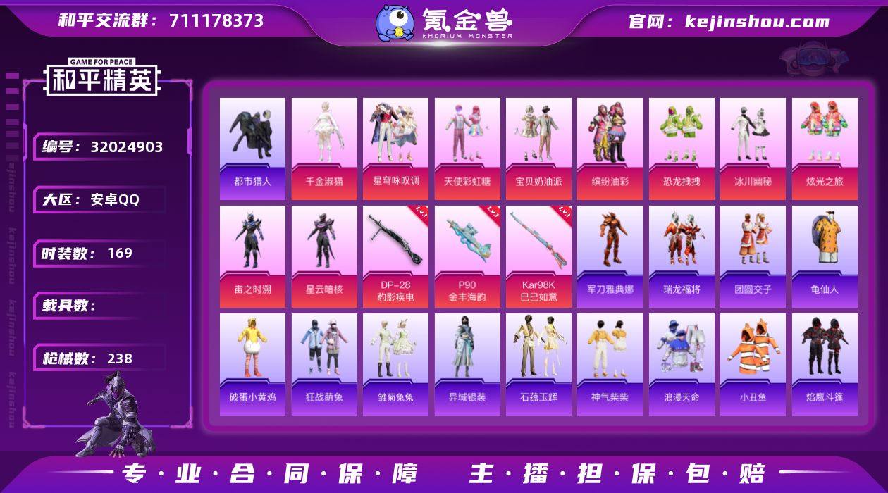 DSH2318【身法号高印记10粉装-6特效枪猪脸 冰川幽秘 暗影哥特,小丑鱼 都市猎人】安卓手Q-10粉装-6特效枪-169套装-238枪皮-18王牌印记-超级王牌4星-74966热力值【10粉装】炫光之旅,天使彩虹糖,宝贝奶油派,缤纷油彩,恐龙拽拽,角色-宙之时溯,星穹咏叹调,角色-千金淑猫,角色-星云暗核,冰川幽秘【6特效枪】Kar98K-巳巳如意[1级],P90-金丰海韵[7级],DP-28-豹影疾电[1级],Mk14-福马献瑞[5级],SCAR-L-青春物语[7级],蜜獾-异瞳寒姬[7级]【5稀有】都市猎人,浪漫天命,暗影哥特,小丑鱼,AKM-缤纷海域【12飞行器】狂鲨锋刃飞行器,顶峰精英尾迹,登顶巅峰飞行器,破刃行动尾迹,异域银装飞行器,光之冒险尾迹,红色滑翔尾迹,萌物绒绒飞行器,极意拳锋飞行器,鸡智如我飞行器,马上有福飞行器,炫彩糖果飞行器【1头盔】甜心宝贝头盔【1背包】甜心宝贝背包【386其它衣服和枪皮】棉花软糖,午间小调,顶瓜瓜,SS34特训,石蕴玉辉,秘语星愿,牛气冲天,幻世战舞者,团圆交子,元气发射,黄色伏地魔,街头潮人,SS30特训,妙红点点,SS28特训,格斗先锋,SS24特训,角色-银尘,SS18特训,懵萌河马,日照花林,巳巳如意,特种颜团子,牛气满满,甜心信使,马上来财,龟仙人,蝶变,青团波波,SS31特训,SS17特训,萝兰蝴蝶,SS21特训,角色-军刀雅典娜,灵蜜圈圈,麻辣教官,耀粉歌者,SS29特训,完美偶像,青春校园,竞技名士,惊鸿侠骨,角色-听雨铃兰,风暴特警,星途旅人,破蛋小黄鸡,炫蓝之夏,SS32特训,黑夜传说,锦衣飞扬,坚韧舞者,瑞龙福将,萌黄之夏,雏菊兔兔,狂战萌兔,角色-瑰梦爱神,软羊咩咩,贝斯之夜,狙击之神,极地朋克,香榭午后,曼妙人鱼,SS14特训,狂鲨锋刃,热血青春,SS37特训,SS26特训,萌趣咩咩,SS20特训,和煦暖阳,游乐,特战装甲,SS27特训,弄潮海豚,鱼渊荷华,空投萌叽,大橘大利,糖糖葫芦,SS15特训,龙舌兰冰茶,雪国风尚,异域银装,薄荷星砂,龙的传人,特殊使命,蓝彩潮人,沙漠