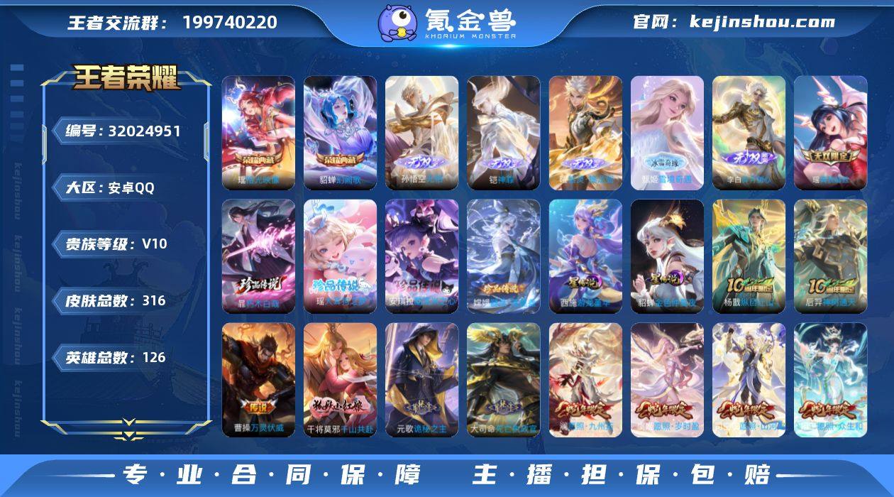 【秒换绑】安卓Q-V10-最强王者段位-126英雄-316皮肤-2典藏皮肤-6无双-4珍品传说-46传说-84史诗 【英雄全皮】:孙权全皮,瑶全皮,西施全皮,阿古朵全皮,戈娅全皮,空空儿全皮,影全皮 【荣耀典藏】:貂蝉幻阙歌,瑶拾光映像 【无双皮肤】:瑶真我赫兹,李白碎月剑心,甄姬雪境奇遇,曜器灵螭龙剑,铠神罪,孙悟空无相 【珍品传说】:嫦娥器灵落星盏,瑶大耳狗之梦,安琪拉酷洛米之心,暃朽木白哉 【传说皮肤】:杨戬纵目迁山,后羿神树通天,曹操万灵伏威,干将莫邪千山共赴,元歌诡秘之主,大司命死亡执政官,西施续相思,杨玉环星之鸣奏,司空震愿照山河定,女娲愿照千秋盛,妲己愿照众生和,澜愿照九州拓,蔡文姬愿照福禄聚,虞姬愿照岁时盈,裴擒虎祥瑞亨通,夏侯惇霜北刀,朵莉亚心动手记,典韦战鼓燎原,马超琥珀纪元,澜逐花归海,艾琳觅芳踪,露娜霜月吟,大乔时之奇旅,宫本武藏惊梅引,东皇太一灼幽烈阳,公孙离记忆之芯,小乔山海琳琅生,百里守约碎云,马可波罗深海之息,马超无双飞将,蔡文姬花朝如约,孙策末日机甲,瑶时之祈愿,王昭君乞巧织情,西施游龙清影,小乔音你心动,镜炽阳神光,虞姬启明星使,貂蝉猫影幻舞,张良黄金白羊座,干将莫邪久胜战神,花木兰冠军飞将,貂蝉仲夏夜之梦,孙尚香末日机甲,宫本武藏地狱之眼,狄仁杰超时空战士 【限定皮肤】:夏侯惇霜北刀,蔡文姬夏日便利店,虞姬夏日便利店,姜子牙天穹之誓,狄仁杰阴阳师,小乔山海琳琅生,赵云皇家上将,赵云龙胆,孙尚香蔷薇恋人,元歌无心,马可波罗深海之息,马可波罗山海玄木吟,狄仁杰魔术师,达摩沙漠行僧,项羽海滩派对,兰陵王金庭之子,李元芳匿光侦查者,李元芳云中旅人,虞姬启明星使,杨玉环遇见飞天,干将莫邪冰霜恋舞曲,雅典娜单词大作战,蔡文姬奇迹圣诞,蔡文姬繁星吟游,鬼谷子五谷丰年,大乔时之奇旅,沈...