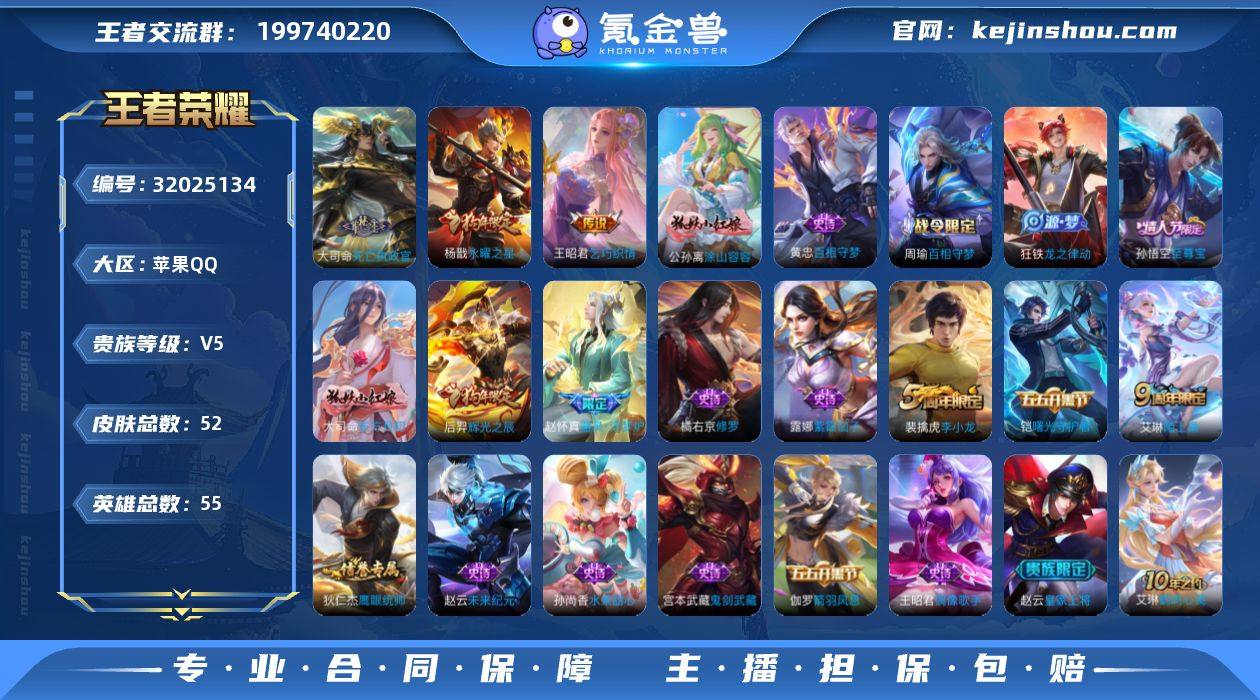 贵族等级:V5 典藏皮肤数:0 珍品无双皮肤数:0 无双皮肤数:0 珍品传说皮肤数:0 传说皮肤数:3 史诗皮肤数:20 皮肤数:52 英雄数:55 段位:钻石 卖家说:水晶抽172左右吧,高战力杨戬小号