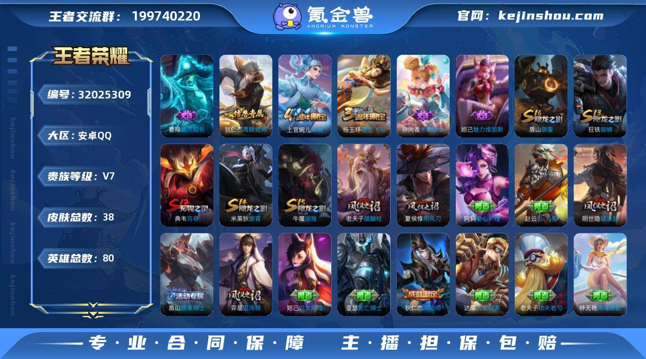 JTWZ-294 可二次 V7 195皮肤 2典藏 9传说 九霄神辉 星域神启 寅虎·赤拳 山海·炽霜斩 孙行者 霜月吟 地狱之眼 炽阳神光 久胜战神 鸣野蒿 无双飞将 黄金狮子座 逐浪之夏 无心 暗影游猎 蔷薇恋人 胡桃夹子 百里守约-百相守梦 冰冠公主 街头霸王 黄金分割率 乱世虎臣 李小龙 特工魅影 天秀·启明 晚萤 水晶猎龙者 白龙吟