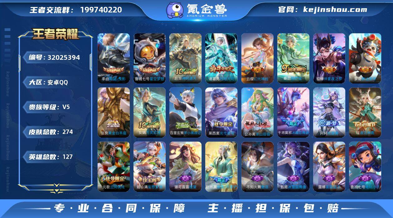 可二次【特价急出/详情看图】安卓Q-V5-最强王者段位-127英雄-274皮肤-2典藏皮肤-7传说-86史诗 【荣耀典藏】:鲁班七号星空梦想,李白鸣剑曳影 【传说皮肤】:后羿神树通天,云缨幻光神枪,桑启鸣野蒿,诸葛亮时雨天司,张良黄金白羊座,梦奇胖达荣荣,貂蝉仲夏夜之梦 【限定皮肤】:白起狰,蒙犽顽岩魄,虞姬夏日便利店,狄仁杰阴阳师,赵云皇家上将,墨子神迹守卫,嬴政优雅恋人,孙尚香蔷薇恋人,庄周云端筑梦师,庄周高山流水,钟无艳王者之锤,芈月重明,芈月幻夜卜梦,元歌云间偶戏,甄姬游园惊梦,曹操烛龙,典韦穷奇,狄仁杰魔术师,狄仁杰万华元夜,达摩星际陆战队,达摩沙漠行僧,项羽海滩派对,老夫子醍醐杖,老夫子航海奇遇记,程咬金演武夺筹,刘邦夺宝奇兵,兰陵王金庭之子,亚瑟潮玩骑士王,牛魔御旌,后羿圣弓游侠,李元芳云中旅人,钟馗驱傩正仪,杨玉环遇见飞天,干将莫邪冰霜恋舞曲,干将莫邪真爱魔法,雅典娜黎明之约,蔡文姬繁星吟游,太乙真人饕餮,鬼谷子原初探秘者,鬼谷子五谷丰年,诸葛亮时雨天司,黄忠火炮绅士,苏烈千军破阵,百里玄策原初追逐者,弈星混沌棋,梦奇顽趣,沈梦溪大漠名商,明世隐疑决卦,裴擒虎李小龙,裴擒虎擒涛扼浪,狂铁御狮,米莱狄御霄,米莱狄胡桃异想国,云中君纤云弄巧,盾山御銮,上官婉儿梁祝,嫦娥拒霜思,鲁班大师探海日志,桑启海盐诗旅,阿古朵江河有灵,张良古海寻踪,蒙犽百解令,蒙恬荣光圣徽,鬼谷子天穹祈灯,姬小满妄想食味,沈梦溪龙舞盛年 【年限皮肤】:诸葛亮时雨天司 【赛季限定】:白起狰,太乙真人饕餮,曹操烛龙,芈月重明,典韦穷奇,狂铁御狮,米莱狄御霄,牛魔御旌,盾山御銮,弈星混沌棋,明世隐疑决卦,老夫子醍醐杖,鬼谷子原初探秘者,狄仁杰万华元夜,程咬金演武夺筹,钟馗驱傩正仪,苏烈千军破阵,达摩沙漠行僧,兰陵王金庭之子...
