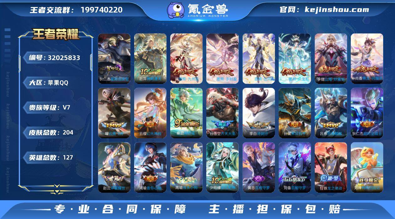 苹果Q-V7-至尊星耀III段位-127英雄-204皮肤-17传说-49史诗【英雄全皮】:孙权全皮,敖隐全皮,空空儿全皮【传说皮肤】:后羿神树通天,司空震愿照山河定,妲己愿照众生和,澜愿照九州拓,虞姬愿照岁时盈,云缨幻光神枪,桑启鸣野蒿,孙尚香乘龙问璇玑,孙悟空齐天大圣,李信山海炽霜斩,吕布怒海麟威,李白诗剑行,孙策末日机甲,赵云淬星耀世,周瑜音你心动,曜云鹰飞将,狄仁杰超时空战士【限定皮肤】:李白谪仙醉月,狄仁杰阴阳师,赵云皇家上将,钟无艳超时空战士,扁鹊奇幻香踪,元歌无心,甄姬落雪兰心,马可波罗山海玄木吟,狄仁杰魔术师,达摩沙漠行僧,项羽海滩派对,兰陵王金庭之子,孙悟空齐天大圣,后羿圣弓游侠,刘备百相守梦,李元芳云中旅人,杨戬潮玩骑兵,干将莫邪胡桃夹子,鬼谷子五谷丰年,大乔白鹤梁神女,苏烈千军破阵,沈梦溪大漠名商,裴擒虎擒涛扼浪,李信山海炽霜斩,上官婉儿梁祝,嫦娥拒霜思,嫦娥暖冬兔眠,鲁班大师探海日志,桑启海盐诗旅,暃星界游侠,艾琳流音漫舞,阿古朵江河有灵,张良古海寻踪,蒙犽百解令,高渐离燃音魔法,妲己灵卜魔法,鬼谷子天穹祈灯,安琪拉乘龙聚宝船,孙尚香乘龙问璇玑,刘邦剑破天穹,程咬金群星魔术团【年限皮肤】:李信山海炽霜斩,马可波罗山海玄木吟,孙尚香乘龙问璇玑,安琪拉乘龙聚宝船,司空震愿照山河定,妲己愿照众生和,澜愿照九州拓,虞姬愿照岁时盈【赛季限定】:苏烈千军破阵,达摩沙漠行僧,兰陵王金庭之子,沈梦溪大漠名商,李元芳云中旅人,桑启海盐诗旅,裴擒虎擒涛扼浪,鲁班大师探海日志,张良古海寻踪,鬼谷子天穹祈灯,刘邦剑破天穹,太乙真人谧流熔炉,钟馗虚灵犬护,亚瑟荣光之誓【战令限定】:后羿圣弓游侠,钟无艳超时空战士,甄姬落雪兰心,暃星界游侠,嫦娥暖冬兔眠,扁鹊奇幻香踪,杨戬潮玩骑兵,艾琳流音漫舞,高渐离燃...