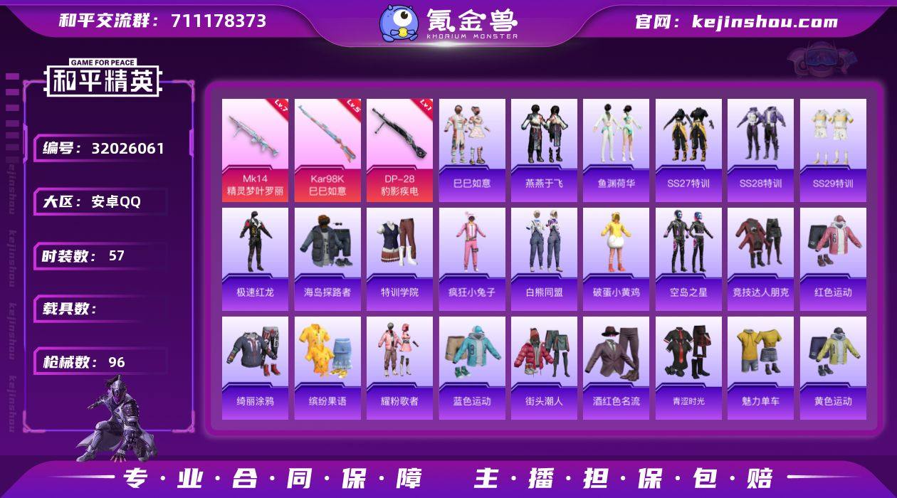 地铁满天赋 安卓 手Q-0粉装-5特效枪-0载具-2粉色飞行器-25144热力值-2王牌印记-57套装-96枪皮【粉色枪皮等级】:UMP45-萌骑冒险(五级),Kar98K-巳巳如意(五级),Mk14-精灵梦叶罗丽(七级),Mk14-福马献瑞(五级),DP-28-豹影疾电(一级)【粉色枪皮】:UMP45-萌骑冒险,Kar98K-巳巳如意,Mk14-精灵梦叶罗丽,Mk14-福马献瑞,DP-28-豹影疾电【粉色飞行器】:星之彼岸飞行器,天之羽翼飞行器