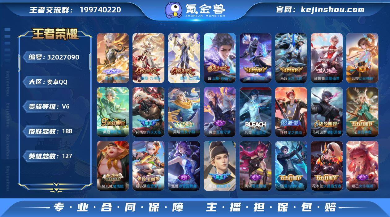 贵族等级:V6 典藏皮肤数:0 珍品无双皮肤数:0 无双皮肤数:1 珍品传说皮肤数:0 传说皮肤数:9 史诗皮肤数:33 皮肤数:188 英雄数:127 段位:铂金 卖家说:传说9个无双1个,珍贵皮肤多