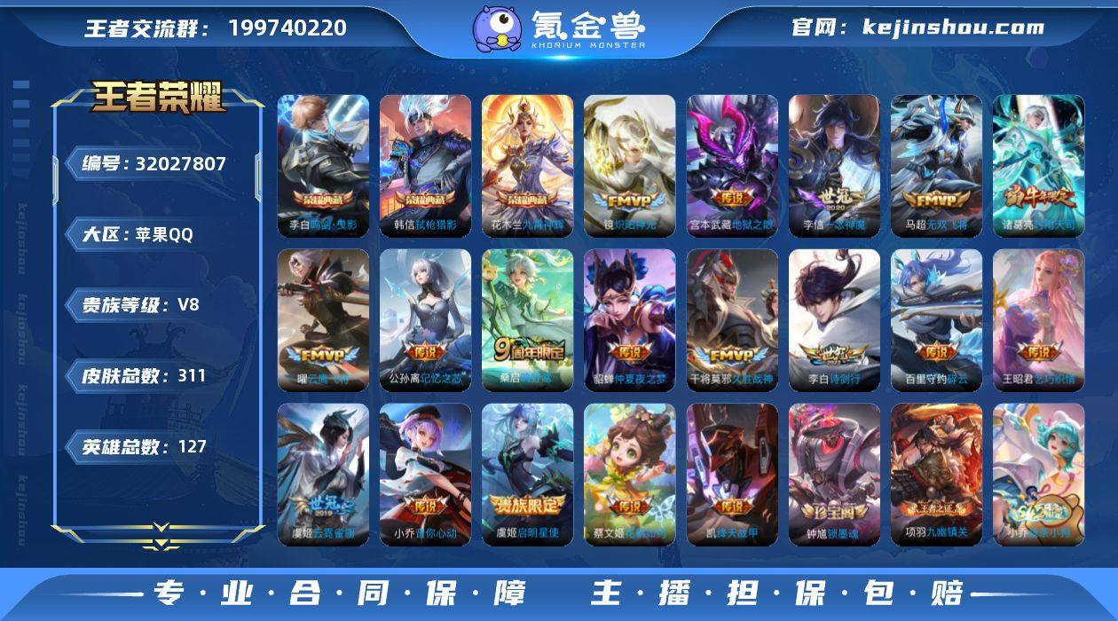 【4794】苹果Q-V8-最强王者段位-127英雄-311皮肤-3典藏皮肤-18传说-90史诗 【英雄全皮】:孙权全皮 【荣耀典藏】:李白鸣剑曳影,花木兰九霄神辉,韩信弑枪猎影 【传说皮肤】:桑启鸣野蒿,公孙离记忆之芯,李白诗剑行,百里守约碎云,马超无双飞将,蔡文姬花朝如约,王昭君乞巧织情,小乔音你心动,诸葛亮时雨天司,铠绛天战甲,镜炽阳神光,虞姬启明星使,曜云鹰飞将,李信一念神魔,干将莫邪久胜战神,虞姬云霓雀翎,貂蝉仲夏夜之梦,宫本武藏地狱之眼 【限定皮肤】:姜子牙天穹之誓,狄仁杰阴阳师,赵云皇家上将,赵云龙胆,孙尚香蔷薇恋人,庄周高山流水,钟无艳王者之锤,钟无艳超时空战士,扁鹊奇幻香踪,白起夜都怪侠,吕布猎兽之王,元歌云间偶戏,元歌无心,甄姬落雪兰心,马可波罗逐梦之星,马可波罗山海玄木吟,狄仁杰魔术师,达摩星际陆战队,达摩沙漠行僧,项羽海滩派对,韩信傲雪梅枪,王昭君午后时光,兰陵王驯魔猎人,兰陵王金庭之子,花木兰瑞麟志,孙悟空至尊宝,孙悟空孙行者,后羿圣弓游侠,李元芳银河之约,李元芳云中旅人,虞姬启明星使,钟馗神迹守卫,钟馗驱傩正仪,杨戬潮玩骑兵,干将莫邪真爱魔法,雅典娜黎明之约,鬼谷子五谷丰年,诸葛亮时雨天司,苏烈千军破阵,百里守约朱雀志,梦奇顽趣,公孙离玉兔公主,沈梦溪大漠名商,明世隐吟游魔法,裴擒虎李小龙,裴擒虎擒涛扼浪,狂铁电玩高手,米莱狄胡桃异想国,上官婉儿梁祝,嫦娥暖冬兔眠,西施玲珑珍味,鲁班大师探海日志,镜匿光追影者,桑启海盐诗旅,暃星界游侠,戈娅驭风魔法,艾琳流音漫舞,司空震地狱燃心,阿古朵江河有灵,张良古海寻踪,蒙恬荣光圣徽,高渐离燃音魔法,妲己灵卜魔法,鬼谷子天穹祈灯,姬小满妄想食味,沈梦溪龙舞盛年,鲁班七号蔬乡物语,李元芳蔬乡物语,刘邦剑破天穹,程咬金群星魔术团,镜青焰无极,项...
