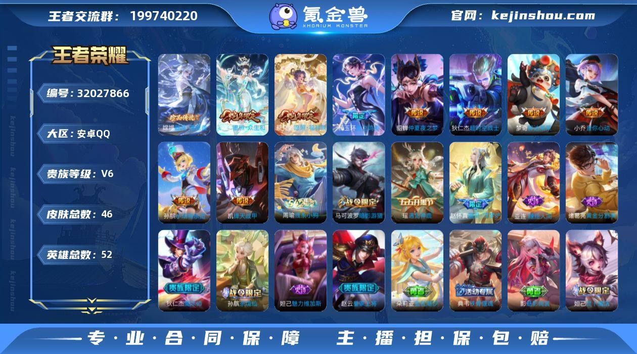 MWZ105334【女号1珍品 9传说 10史诗 V6 铂金三3星】安卓Q-46皮肤-52英雄 【珍品传说】 器灵·落星盏 【传说皮肤】 星之鸣奏 小动物乐团 愿照·福禄聚 愿照·众生和 超时空战士 仲夏夜之梦 绛天战甲 胖达荣荣 音你心动 【史诗皮肤】 茶境仙 器灵·浮梦炉 糖绘人间 谧流熔炉 遇见神鹿 线条小狗 魅力维加斯 魔术师 暗影游猎 皇家上将 黄金分割率 【勇者皮肤】 访茗客 魅影绮裳 灵卜魔法 爆裂喵拳 魅影绮裳 铁骨偃魂 苍林狼骑 金色潮汐 灵卦秘语 谧流熔炉 虹云星官 坚韧之力 天使之翼 海滩派对 死亡骑士 忍·炎影 守护之力 黄金武士 营地ID:1622603421 "