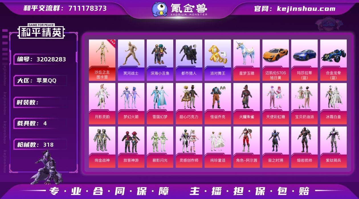 木乃伊 都市 金鞋 觉醒螳螂 新101 雪国 甜心巧克力 怪诞 放客 3级AUG星梦 暗夜之虎 满地铁天赋】c25629-【无二次】【因赛季更新游戏段付以上号为准!】 苹果Q-1红装6稀有4载具20粉装9特效枪39热门265套装318枪皮 28印记 历史绝世王牌35星 【1红装】 沙丘之主-图卡盟 (3级) 【6稀有】 木乃伊 S1赛事外套 AKM-缤纷海域 都市猎人 派对舞王 派对舞王(金靴子) 【4载具】 迈凯伦570S旭日黄 玛莎拉蒂蓝色 合金龙骨蓝色 星梦玉骢 【20粉装】 觉醒初号机 圣堂之誓 梦幻火箭 雪国幻梦 宝贝奶油派 天使彩虹糖 甜心巧克力 月影灵韵 阿尔茜 火曜朱雀 怪诞乔克 熔岩统帅 紫钛骑兵 宙之时溯 放客神游 纯珍童话 灵感创作师 绚金战神 冰霜白皇 碧影闪光 【9特效枪】 M416-心之恋语 (7级) P90-沙丘之主 (3级) AKM-炫紫旋律 (5级) Kar98K-巳巳如意 (5级) DP-28-豹影疾电 (5级) AUG-星梦奇缘 (3级) M762-激战未来 (4级) SCAR-L-童趣迷兔 (5级) DP-28-圣堂之誓 (5级) 【39热门】 8号机 Mark.06 小丑鱼 奇迹天团 龟仙人 星光纪元 暗夜之虎 2B战斗服款 仓鼠灰灰 雪山精英 东方飞龙 恶魔人蛛 爱崽白熊 梦魇先生 呆萌铁蟹 万圣娃娃 鹰眼刺客 好奇恐龙 奇迹天团 黄金大亨 暗夜之虎 迅捷狂鲨 深海小丑鱼 浪漫波比 暗影哥特 团圆交子 瑞龙福将 粉红小猪 酷熊伴侣 漫步者 薄荷蓝莓 破蛋小黄鸡 风华少年志 白月香洋装 黑色刀锋 极速红龙 弄潮海豚 M762-瑞龙福将 AWM-激战未来 【1飞行器】 梦幻火箭飞行器 【8头盔】 国宝胖达头盔 童趣迷兔头盔 梦幻火箭头盔 雪国精灵头盔 火曜朱雀头盔 甜心宝贝头盔 幻影战神头盔 马卡龙头盔 【8背包】 梦幻火箭背包 雪国精灵背包 火曜朱雀背包 甜心宝贝背包 金属狂野背包 深海小丑鱼背包 神秘黑猫背包 马卡龙背包