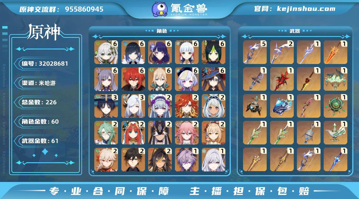 冒险等级:60 总黄数:226 5星角色数:60 5星武器数:61 原石数量:187 相遇之缘数量:0 纠缠之源数量:0 6命纳西妲,6命夜兰,6命雷电将军,6命神里绫华,6命提纳里,6命刻晴,6命迪卢克,6命琴,6命七七,6命莫娜,3命流浪者,3命申鹤,2命梦见月瑞希,2命玛薇卡,2命玛拉妮,2命白术,2命妮露,2命赛诺,2命八重神子,2命宵宫,2命枫原万叶,2命钟离,2命迪希雅,1命杜林,1命丝柯克,1命瓦雷莎,1命阿蕾奇诺,1命那维莱特,1命艾尔海森,1命魈,1命荒泷一斗,1命优菈,1命胡桃,1命甘雨,1命达达利亚,0命兹白,0命哥伦比娅,0命奈芙尔,0命菲林斯,0命菈乌玛,0命伊涅芙,0命爱可菲,0命茜特菈莉,0命恰斯卡,0命希诺宁,0命基尼奇,0命艾梅莉埃,0命希格雯,0命克洛琳德,0命千织,0命闲云,0命娜维娅,0命芙宁娜,0命莱欧斯利,0命林尼,0命神里绫人,0命珊瑚宫心海,0命阿贝多,0命可莉,0命温迪 6命爱诺,6命班尼特,6命菲米尼,6命嘉明,6命久岐忍,6命卡齐娜,6命琳妮特,6命欧洛伦,6命绮良良,6命赛索斯,6命香菱,6命行秋,6命夏沃蕾,6命伊安珊,6命伊法,6命安柏,6命芭芭拉,6命北斗,6命重云,6命迪奥娜,6命多莉,6命珐露珊,6命菲谢尔,6命九条裟罗,6命凯亚,6命卡维,6命坎蒂丝,6命柯莱,6命雷泽,6命丽莎,6命罗莎莉亚,6命莱依拉,6命鹿野院平藏,6命米卡,6命诺艾尔,6命凝光,6命砂糖,6命托马,6命五郎,6命辛焱,6命烟绯,6命瑶瑶,6命云堇,6命早柚,4命蓝砚,2命夏洛蒂,0命叶洛亚,0命雅珂达,0命塔利雅,0命埃洛伊 精5若水,精2阿莫斯之弓,精1苍耀,精1焚曜千阳,精1赦罪,精1赤月之形,精1有乐御簾切,精1鹤鸣余音,精1金流监督,精1万世流涌大典,精1最初的大魔术,精1碧落之珑,精1裁叶萃光,精1图莱杜拉的回忆,精1千夜浮梦,精1圣显之钥,精1赤沙之杖,精1波乱月白经津,精1神乐之真意,精1息灾,精1赤角石溃杵,精1不灭月华,精1薙草之稻光,精1飞雷之弦振,精1雾切之回光,精1苍古自由之誓,精1松籁响起之时,精1护摩之杖,精1和璞鸢,精1斫峰之刃,精1冬极白星,精1终末嗟叹之诗,精1苇海信标,精1猎人之径,精1磐岩结绿,精1狼的末路,精1风鹰剑,精1天空之傲,精1天空之卷,精1无工之剑,精1天空之脊,精1天空之翼,精1天空之刃,精1四风原典 100%侦察骑士,古恩希尔德的传承,帆影游风,海风之梦,花时来信,极夜真梦,冷花幽露,霓裾翩跹,琪花星烛,倩影游侠,莎邦之息,宿雪桃红,岁夜欢哗,闪耀协奏,纱中幽兰,玄玉瑶芳,星与月之约,雨化竹身,殷红终夜,叶隐芳名,致教会自由人 卖家说:原铁连体号,送100天月卡,全角色90级图鉴差大团长,已大保底垫20抽,还有三四个版本地图原石资源,有皇冠64祝圣47羽毛19全部五星角色部分小毕业,部分能玩面版提升空间特别大,底子很好,星铁6+5景元厨,景元辅助齐全,各种辅助齐全,热门c都有,还有将近保底星琼,地图还可以肝很多星琼。喜欢的可以直接拿下,可小砍价!心血号,找包赔!