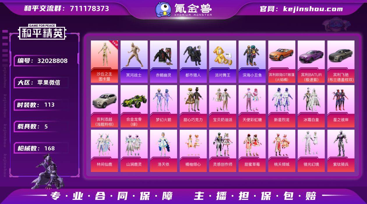 极品素材男神号!【店主推荐捡漏号!可直接换绑】苹果 微信-无敌战神框-1神装-19粉装-13特效枪-5载具-3粉色飞行器-68853热力值-9王牌印记-113套装-168枪皮【红色神装等级】:沙丘之主-图卡盟(二级)【红色角色神装】:沙丘之主-图卡盟【热门品类】:粉装-梦幻火箭,套装-浪漫天命,套装-赤蝎幽灵,套装-都市猎人,套装-冥河战士,套装-派对舞王,套装-深海小丑鱼,套装-小丑鱼,套装-暗影哥特【粉色套装】:粉装-甜心巧克力,粉装-宝贝奶油派,粉装-天使彩虹糖,粉装-梦幻火箭,粉装-新星烈龙,粉装-冰霜白皇,粉装-星之彼岸,粉装-林间仙鹿,粉装-山涧鹿灵,角色-洛天依,粉装-橘柚倾心,粉装-灵感创作师,粉装-甜蜜草莓,粉装-桃夭倾城,粉装-镜光幻境,角色-紫钛骑兵,角色-圣堂之誓,角色-初号机 觉醒Ver.,粉装-未来领航者【粉色枪皮等级】:AKM-甜心宝贝(六级),AKM-梦之光华(一级),SCAR-L-桃夭倾城(六级),M416-五爪金龙(一级),M416-心之恋语(一级),M416-墨龙九天(六级),GROZA-精灵之光(三级),AUG-星之彼岸(六级),P90-粉樱探戈(五级),P90-沙丘之主(一级),爆炸猎弓-拳皇·狂花道(一级)【粉色载具】:宾利欧陆GT敞篷(火焰橘),宾利BATUR(极速紫),宾利飞驰(布罗德盖棕双色),宾利添越(浅瞪羚棕),合金龙骨(绿)【粉色枪皮】:AKM-甜心宝贝,AKM-梦之光华,SCAR-L-桃夭倾城,M416-五爪金龙,M416-心之恋语,M416-墨龙九天,GROZA-精灵之光,AUG-星之彼岸,P90-粉樱探戈,P90-沙丘之主,爆炸猎弓-拳皇·狂花道,烟雾弹-猫咪绅士,破片手榴弹-秋玉花灯【粉色飞行器】:纯梦嫁纱飞行翼,沙丘之主天马,龙翔九天飞行器