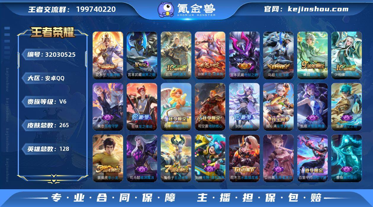 可二次【店主推荐捡漏号!可直接换绑】安卓Q-V6-永恒钻石IV段位-128英雄-265皮肤-1星传说-1典藏皮肤-5传说-63史诗 【荣耀典藏】:花木兰九霄神辉 【传说皮肤】:后羿神树通天,桑启鸣野蒿,孙策乘龙淬吴钩,马超无双飞将,宫本武藏地狱之眼 【限定皮肤】:蒙犽顽岩魄,蔡文姬夏日便利店,虞姬夏日便利店,姜子牙天穹之誓,杨戬破阵退雄兵,狄仁杰阴阳师,赵云皇家上将,庄周高山流水,高渐离玩趣恶龙,夏侯惇朔风刀,狄仁杰魔术师,狄仁杰万华元夜,达摩沙漠行僧,项羽海滩派对,老夫子醍醐杖,程咬金演武夺筹,兰陵王金庭之子,牛魔御旌,李元芳银河之约,李元芳云中旅人,钟馗神迹守卫,钟馗驱傩正仪,杨戬潮玩骑兵,干将莫邪胡桃夹子,雅典娜黎明之约,太乙真人华丽摇滚,鬼谷子原初探秘者,鬼谷子五谷丰年,苏烈千军破阵,百里玄策原初追逐者,弈星混沌棋,梦奇顽趣,沈梦溪大漠名商,明世隐疑决卦,裴擒虎李小龙,裴擒虎擒涛扼浪,米莱狄御霄,云中君纤云弄巧,盾山御銮,上官婉儿梁祝,鲁班大师探海日志,桑启海盐诗旅,艾琳流音漫舞,司空震地狱燃心,阿古朵江河有灵,张良古海寻踪,蒙犽百解令,蒙恬荣光圣徽,鬼谷子天穹祈灯,姬小满妄想食味,孙策乘龙淬吴钩,沈梦溪龙舞盛年,刘邦剑破天穹,程咬金群星魔术团,镜青焰无极,项羽苍威无极,刘备异域游侠,周瑜熔金海岸 【年限皮肤】:孙策乘龙淬吴钩 【赛季限定】:米莱狄御霄,牛魔御旌,盾山御銮,夏侯惇朔风刀,弈星混沌棋,明世隐疑决卦,老夫子醍醐杖,鬼谷子原初探秘者,狄仁杰万华元夜,程咬金演武夺筹,钟馗驱傩正仪,苏烈千军破阵,达摩沙漠行僧,兰陵王金庭之子,沈梦溪大漠名商,李元芳云中旅人,桑启海盐诗旅,裴擒虎擒涛扼浪,鲁班大师探海日志,张良古海寻踪,鬼谷子天穹祈灯,刘邦剑破天穹,姜子牙天穹之誓,东皇太一噬灭天穹,太乙真人...