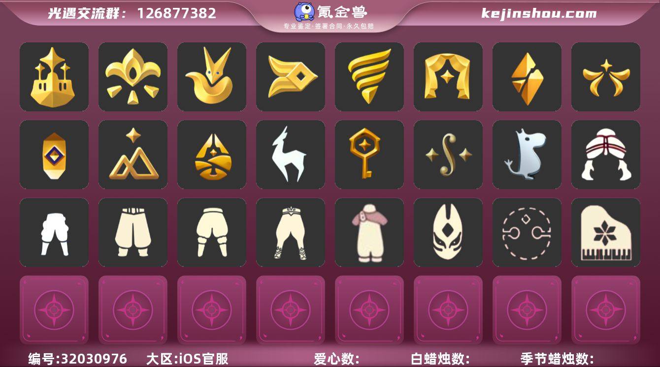 蜡烛数量:223 爱心数量:92 季节蜡烛数量:20 翼数量:117 风行季,潜海季,表演季,破晓季,追忆季,夜行季,彩染季,青鸟季,双星季 披风斗篷,双星季毕业斗篷,必胜客联动斗篷,青鸟毕业斗篷,青鸟占卜智慧斗篷,青鸟怀旧火花斗篷,青鸟尊贵蓬头斗篷,彩染围巾斗篷,彩染跳跃舞者斗篷,绫条斗篷,彩染季锐角边斗篷,瑞雪斗篷,绿羽披肩斗篷,蓝羽披肩斗篷,遥鲲长斗,水母斗篷,遥鲲短斗篷,半边围巾斗篷,红绒斗篷,白绒斗篷,花瓣斗篷,围巾斗篷,贵族红绒斗篷,粉色花瓣斗篷,黑边红绒斗篷,白鸟斗,黑金,白金,红金,透明蓝蝴蝶,绿芽,圣诞斗,万圣斗,彩虹斗,樱花斗 海牛发型,士兵发型,头盔发型,温柔的玩具匠发型,摇鲲飞翼发型,青鸟盛装彩纸发型,彩染跳跃舞者发型,彩染拳礼武僧发型,郡主发型,健忘兔子发型,彩虹发型,吊坠双辫发型,冥龙长辫,皇冠水母头,遥鲲长辫,卷发,公主头,钟塔小帽,沙滩草帽,脏辫发型,水母头发型,秃头发型,总裁发型,长发脏辫,女生短发,白枭,咖喱,公主,蝴蝶结,正太,书虫,高马尾,粗辫,虚荣,花环,若笠,明制,樱花,猫耳,女巫,卫兵,圣诞帽,绒帽,虎狮 士兵裤子,温柔的玩具匠长裙,严厉的牧牛人长裙,彩染拳礼武僧裤子,彩染挑衅艺伎裤子,彩染跳跃舞者裤子,青鸟伐木不舍裤子,青鸟盛装彩纸连衣裙,青鸟尊贵蓬头裤子,长靴背带裤,无袖长袍,武士裤,白棉裤,搓澡巾,灯笼裤,紧身裤,毛靴裤,万圣裤 胡子面具,严厉的牧牛人面具,粽叶发带面具,青鸟盛装彩纸面具,牛头面具,海盗面具,夜行毕业面具,受伤面具,老兵胡子面具,裂纹面具,水手短胡子面具,双边长胡子面具,老头面具,金色面纱,演员飞吻面具,矮人面具,黑脸,牛头,虎头,龙头,兔头,玫瑰花面具 必胜客联动面饰,青鸟占卜智慧面饰,青鸟毕业面饰,彩虹耳坠 暮星篇海报,木制蝴蝶玩具,长矛,盾牌,海牛玩具,海牛召唤权杖,蓝色星星地毯,螃蟹,树枝,三人茶铺,粽叶吊床,青鸟季树杈,玫瑰小盆栽,寻宝铲,冥龙号角,星星奖杯,书架柜子,小棚子,风铃,双人沙滩躺椅,纸风车,大铃铛乐器,相机,烟花棒,帐篷,拱门,圣诞椅,万圣椅,雪桶,蹦迪灯,彩旗,气球,坐垫,海螺,爱心抱枕,向日葵 枯叶发饰,彩虹头巾,必胜客联动礼帽,青鸟尊贵蓬头耳机,青鸟怀旧火花发饰,青鸟盛装彩纸发饰,彩染拳礼武僧发饰,彩染挑衅艺伎发饰,帽匠绅士礼帽,樱花头饰,唐僧帽,小红花,红色牛角,纸船头饰,辫子发饰,小鸟头饰,羽毛发卡,羽毛装饰,羽毛发饰,猫猫头套,花环-头饰,太阳帽,蓝色音乐会,小丑帽,七夕发饰,魔术帽 必胜客联动围巾,青鸟毕业项链,彩染季项链,夜行季绒毛围脖,破晓季节项链,螃蟹肩饰,黑色领巾,表演季节项链,风行季节项链,铃铛,黑色领结,追忆季节项链,围巾,风行毛领,海螺项链,圣诞领结,海浪围巾 刀疤士兵鞋子,青鸟伐木不舍鞋子,寻宝长靴,彩染挑衅艺伎鞋子,彩染跳跃舞者鞋子,布鞋,万圣鞋,芭蕾鞋 小黄鸭发饰礼包,小黄鸭雨衣套装礼包,渐变双马尾发型礼包,心心相印发饰礼包,小狗周年发饰,巫师,围巾,绊爱,荷叶伞,蜘蛛斗,运动鞋,秋千,白绒金,瑞雪,彩虹帽,绒帽,橘子,贝壳,南瓜,枯角,雪花,猫套,彩虹耳钉,彩虹耳机,四叶草,锦标赛桂冠