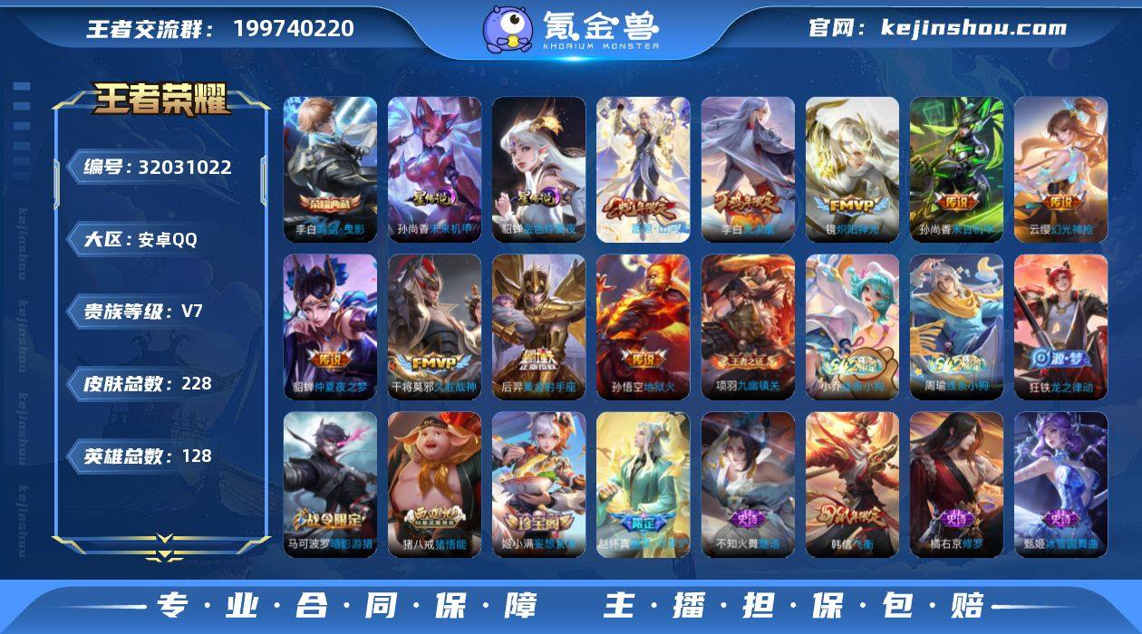 安卓Q-V7-最强王者段位-128英雄-228皮肤-1典藏皮肤-2星元-9传说-56史诗 【英雄全皮】:猪八戒全皮,影全皮 【荣耀典藏】:李白鸣剑曳影 【传说皮肤】:司空震愿照山河定,云缨幻光神枪,镜炽阳神光,干将莫邪久胜战神,后羿黄金射手座,貂蝉仲夏夜之梦,李白凤求凰,孙尚香末日机甲,孙悟空地狱火 【限定皮肤】:白起狰,狄仁杰阴阳师,虞姬凯尔特女王,赵云皇家上将,墨子神迹守卫,嬴政白昼王子,鲁班七号狮舞东方,庄周高山流水,高渐离死亡摇滚,孙膑妖精王,扁鹊炼金王,芈月重明,吕布猎兽之王,周瑜赤莲之焰,夏侯惇朔风刀,甄姬游园惊梦,曹操烛龙,典韦穷奇,马可波罗暗影游猎,狄仁杰魔术师,狄仁杰万华元夜,达摩沙漠行僧,项羽海滩派对,老夫子醍醐杖,老夫子航海奇遇记,程咬金演武夺筹,韩信逐梦之影,韩信飞衡,兰陵王驯魔猎人,兰陵王金庭之子,孙悟空美猴王,牛魔御旌,李元芳云中旅人,钟馗神迹守卫,钟馗驱傩正仪,雅典娜黎明之约,太乙真人饕餮,鬼谷子原初探秘者,鬼谷子五谷丰年,苏烈千军破阵,百里玄策原初追逐者,弈星混沌棋,沈梦溪大漠名商,明世隐疑决卦,裴擒虎李小龙,狂铁御狮,米莱狄御霄,盾山御銮,猪八戒西部大镖客,猪八戒猪悟能,上官婉儿梁祝,嫦娥拒霜思,桑启海盐诗旅,艾琳女武神,蒙恬荣光圣徽,鬼谷子天穹祈灯,姬小满妄想食味,刘邦剑破天穹,程咬金群星魔术团 【年限皮肤】:孙悟空美猴王,李白凤求凰,韩信飞衡,司空震愿照山河定 【赛季限定】:孙膑妖精王,扁鹊炼金王,虞姬凯尔特女王,白起狰,太乙真人饕餮,曹操烛龙,芈月重明,典韦穷奇,狂铁御狮,米莱狄御霄,牛魔御旌,盾山御銮,夏侯惇朔风刀,弈星混沌棋,明世隐疑决卦,老夫子醍醐杖,鬼谷子原初探秘者,狄仁杰万华元夜,程咬金演武夺筹,钟馗驱傩正仪,苏烈千军破阵,达摩沙漠行僧,兰陵王金庭之子,...