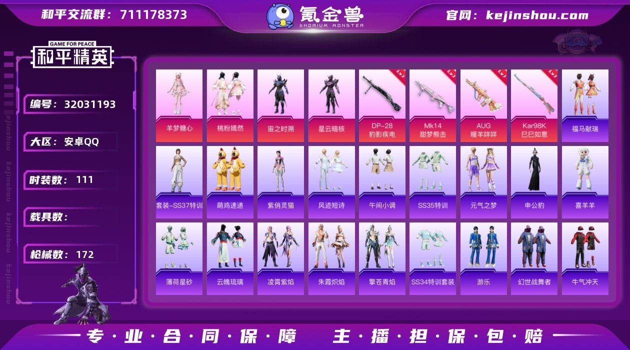 可二次实名【6特效枪4粉装 秒换绑不用等】 安卓Q区-43942热力值-111套装-172枪皮 【4粉装】 宙之时溯 星云暗核 桃粉嫣然 角色-羊梦糖心【6特效枪】 Mk14-福马献瑞(5级) ACE32-萌骑漫游(5级) Kar98K-巳巳如意(5级) Mk14-甜梦熊击(5级) AUG-暖羊咩咩(5级) DP-28-豹影疾电(5级)【161热门】 破蛋小黄鸡 豚鼠丹丹 白色伏地魔 SS26特训 SS25特训 SS24特训 SS23特训 SS22特训 AKM-环太平洋 SCAR-L-玉兔迎春 GROZA-2B战斗服款 GROZA-田园牧歌 M762-天降萌叽 M762-彩虹符号 Mk47-乌木金纹 UZI-娇憨猪猪 UMP45-蓝色火焰 S12K-垂柳戏鸭 DBS-彩虹符号 M249-彩虹符号 MG3-幻世战舞者 M416-蓝色火焰 GROZA-彩虹符号 长空猛禽 特训学院 青涩时光 青年教官 牛气冲天 妙红点点 魅力单车 猎鹰 蓝色运动 橘黑制服 竞技达人朋克 黄色运动 黄色伏地魔 红色运动 黑色伏地魔 海岛探路者 S1897-糯团青竹 P90-紫矿核心 GROZA-紫矿核心 顶瓜瓜 M249-无面战甲 MG-36-薄荷星砂 GROZA-福马献瑞 恋语绒绒 SS34特训 霜纹水星 朱霞炽焰 蜜獾-鸡智如我 AWM-天降萌叽 福马献瑞 大橘大利 DBS-辉云木星 SS19特训 SS20特训 SS21特训 凌霄紫焰 蓝冰羽 ACE32-冰晶雪宝 鱼渊荷华 擎苍青焰 SS28特训 M16A4-冰河战士 燕燕于飞 SS31特训 镰刀-咒蚀之裁 SS33特训 SS32特训 紫幽梦 游乐 MG3-霓彩脉冲 MG3-火熔核心 异域银装 粉恋花 战术大师 JS9-凌霄紫焰 MG-36-凌霄紫焰 马上有钱 ARX-凌霄紫焰 G36C-星穹咏叹调 P92-凌霄紫焰 申公豹 平底锅-凌霄紫焰 狙击之神 破片手榴弹-海盐豹豹 UMP45-海盐豹豹 Kar98K-彩虹符号 撬棍-幻世战舞者 Mini14-炫彩节奏 M417-玩趣呆呆 Mk14-薄荷星砂 平底锅-光之冒险