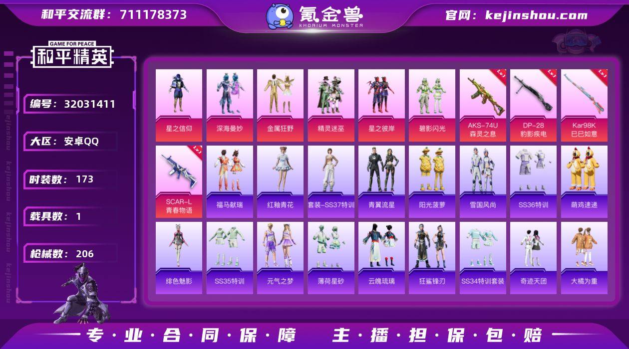 【6粉装6特效枪1载具 秒换绑不用等】 安卓Q区-67224热力值-173套装-206枪皮 【1载具】 兰博轿车灰色【6粉装】 星之彼岸 金属狂野 星之信仰 精灵迷巫 碧影闪光 深海曼妙【6特效枪】 AKS-74U-森灵之息(5级) Mk14-福马献瑞(5级) UMP45-萌骑冒险(4级) SCAR-L-青春物语(7级) Kar98K-巳巳如意(5级) DP-28-豹影疾电(5级)【188热门】 浪漫天命 雪山精英(老6服) 潮萌小黄鸭 鹰眼刺客 奇迹天团 破蛋小黄鸡 大橘为重 浪漫波比 迪迦奥特曼 极速红龙 团圆交子 瑞龙福将 M416-仓鼠灰灰 M416-魔法学院 缤纷焰火 白色伏地魔 SS9特训 SS8特训 SS6特训 SS27特训 SKS-折纸暴龙 S12K-华贵君王 PEL摇滚竞梦者 Mk47-洛神天依 M762-乌木金纹 M416-乌木金纹 GROZA-乌木金纹 AKM-环太平洋 AUG-幻影战神 M762-天降萌叽 M762-彩虹符号 Mk47-乌木金纹 M416-夜灯 DBS-彩虹符号 MG3-幻世战舞者 AKM-虎虎生威 AKM-星之信仰 AKM-霓虹街区 AKM-春暖花开 M16A4-龙虾霸霸 M416-蓝色火焰 GROZA-异彩先驱 GROZA-春暖花开 众神之王 长空猛禽 异彩先驱 甜蜜熊情侣 特训学院 拳皇97八神庵 青年教官 骑行爱好者 霓虹街区 霓虹极客 魅力单车 凛冬战士 猎鹰 黎明保卫者 蓝色运动 橘黑制服 竞技勇士朋克 竞技达人朋克 坚韧舞者 灰色格斗者 黄色运动 黄色伏地魔 红色运动 黑色伏地魔 淡雅花蕊 M762-瑞龙福将 S1897-糯团青竹 AA12-G-雨过天青 沙漠之鹰-雨过天青 P90-紫矿核心 GROZA-紫矿核心 M16A4-雨过天青 AUG-魔法学院 顶瓜瓜 SPAS-12-福马献瑞 雨过天青 MG-36-薄荷星砂 GROZA-福马献瑞 恋语绒绒 SS34特训 霜纹水星 蜜獾-鸡智如我 星渊小夜曲 SS5特训 撬棍-冰晶雪宝 SS7特训 SS18特训 福马献瑞 大橘大利 SS17特训 SS19特