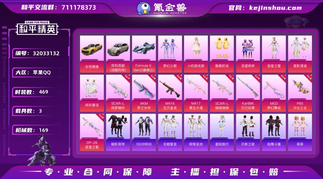苹果 手Q-9粉装-8特效枪-4载具-3粉色飞行器-59961热力值-7王牌印记-137套装-163枪皮 【热门品类】:套装-浪漫天命,角色-军刀雅典娜,套装-龟仙人,套装-浪漫波比,套装-红红火火 【粉色载具】:特斯拉Model X(珍珠白),玛莎拉蒂MC20(星石白),宾利欧陆GT敞篷(火焰橘),合金龙骨(蓝) 【粉色套装】:粉装-未来战士,粉装-金风玉露,粉装-麻辣鲜香锅,粉装-金属狂野,粉装-酣梦娃娃,粉装-恐龙拽拽,粉装-寒光使者,粉装-第五大道,角色-紫钛骑兵 【粉色枪皮等级】:AKM-炫紫旋律(五级),SCAR-L-锦绣绵绵(五级),M416-暖熊萌萌(五级),M416-全功率超战(三级),GROZA-镜光银凌(五级),Vector-环太平洋(四级),Kar98K-巳巳如意(三级),Mini14-龙虾霸霸(五级) 【粉色枪皮】:AKM-炫紫旋律,SCAR-L-锦绣绵绵,M416-暖熊萌萌,M416-全功率超战,GROZA-镜光银凌,Vector-环太平洋,Kar98K-巳巳如意,Mini14-龙虾霸霸 【粉色飞行器】:炫紫旋律飞行器,沙丘之主天马,繁龙极客飞行器 【粉色降落伞】:深海曼妙降落伞,快乐主宰降落伞,凝视深渊降落伞,天启纪元降落伞,金风玉露降落伞,龙虾霸霸降落伞,心之恋语降落伞,星之彼岸降落伞,恐龙拽拽降落伞,橘柚倾心降落伞,环太平洋降落伞,星际浪客降落伞,暗夜鎏金降落伞,音爆索尼克降落伞,飒粉甜心降落伞,圣堂之誓降落伞,沙丘之主降落伞,赛博古神降落伞 【稀有套装】:套装-龟仙人,套装-糖糖葫芦,套装-青团波波,角色-许七安,套装-极速光影 【稀有枪皮】:AKM-PEL轰鸣竞梦者,AKM-天启纪元,AKM-灼热熔岩,AKM-环太平洋,AKM-龙的传人,M16A4-九霄,M16A4-快乐主宰,M16A4-龙虾霸霸,SCAR-L-炫彩节奏,SCAR-L-金风玉露,M416-夜灯,M416-糯团青竹,M416-红色方程式,GROZA-懵萌河马,GROZA-田园牧歌,GROZA-黑色刀锋,AUG-凝视深渊,AUG-天降萌叽,QBZ-...
