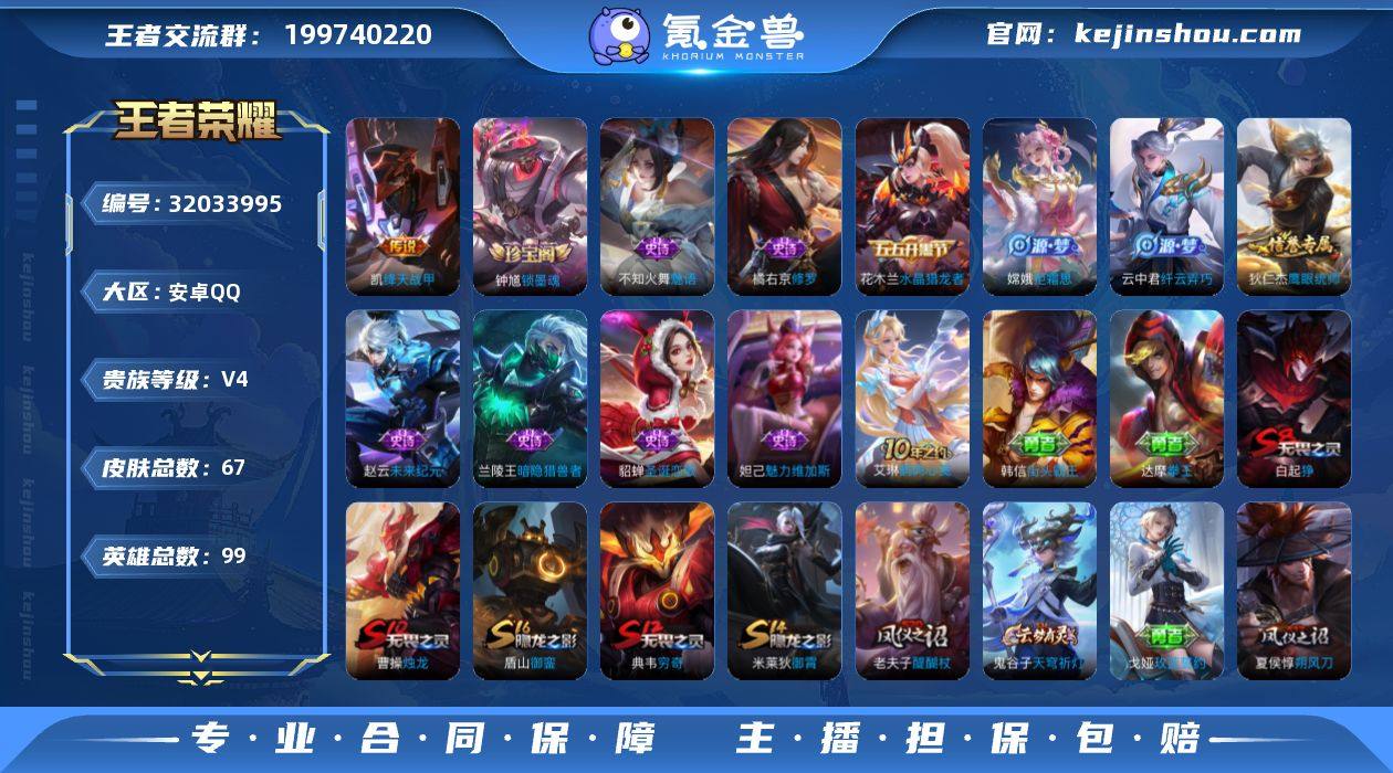 S2-OJ10121 安卓QQ V4 67皮 1未兑荣耀水晶 1传说 20限定 打野7段 2227星币 营地号:423268340 【限定传说】拒霜思,修罗,未来纪元,绛天战甲,魅语,原初探秘者,暗隐猎兽者,水晶猎龙者,圣诞恋歌,街头霸王,无畏之灵·狰,烛龙,重明,穷奇,御霄,御銮,朔风刀,混沌棋,疑决卦,醍醐杖,万华元夜,拳王,霸王丸,锁墨魂,