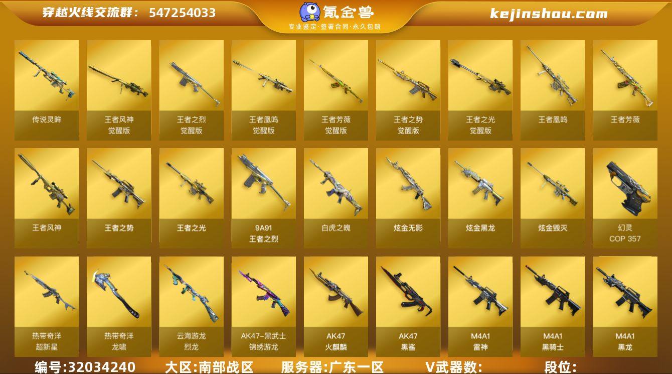 L629605 【传说艾莉莎/传说灵眸/幻神*2+音效卡(宠儿+冠军之幻+荣耀世冠白鲨+电流骇客+黄忠)/星神+音效卡(枪娘默)/王者风神/裁决(异化之眼)/幻影/毁灭+音效卡(星空+张飞+墨兰)/白虎之魄/王者芳薇/火麒麟(关羽)/雷神/黑骑士(马超)/M4A1青龙/王者凤鸣/加特林炼狱+音效卡/烈龙云海/COP幻灵/柯尔特电竞装甲/斯泰尔枪娘暗刃/冠军之刃*2/4防王者潘多拉/4防王者影豹/】 会员等级0 英雄级武器数量73 【可二次实名】 【永久包赔】 【能人脸包赔】 【VIP 0】 【能排位】 【枪王】 传说武器1 王者炫金武器10 热门武器5 英雄级武器29 稀有武器12 暴走生化3 挑战大师1 角色7 稀有皮肤27 音效卡8 投掷武器11 传说武器:传说灵眸; 王者炫金武器:炫金黑龙,王者凰鸣,王者芳薇,王者风神,炫金毁灭,白虎之魄,王者之光,王者之势,王者之烈,炫金无影; 热门武器:Kar98K-星神,M200-幻神,COP 357-幻灵,Knife-冠军之刃,炼狱-迷你小钢; 英雄级武器:AWM-裁决,超新星-热带奇洋,龙啸-热带奇洋,黑武士-锦绣游龙,G36C-幻影,加特林-炼狱,龙啸,AA-12-雷霆,擎天-云海游龙,烈龙-云海游龙,幻灵之锋,M4A1-青龙,AK47-黑鲨,M4A1-黑龙,QBZ03-金色蔷薇,烈火-动感闪耀,天神-动感闪耀,屠龙-动感闪耀,无影-神兵利器,M4A1-雷神,屠龙,沙鹰-修罗,AWM-天龙,麒麟刺,AK47-火麒麟,Barrett-毁灭,柯尔特-电竞装甲,M4A1-黑骑士,Barrett-极光; 稀有武器:夺魂,加利尔ACE-零号,迷你白狐,牛牛-AK47,QBZ03-斯沃特,Cat-刀锋,迷你波特博士,毁灭-孙三炮,斯泰尔-枪娘暗刃,裁决-雪莉杨,雷神-小红,AWM-灵狐-15周年嘉年华; 暴走生化:双面神-竞魂,恶魔终结者-湮灭之柱,女皇终结者-魔龙之吻; 挑战大师:激光毁灭者III-白马银枪; 角色:传说艾莉莎,晴雅,角色-空,职业选手,超能女侍·觉,王者影豹,王者潘...