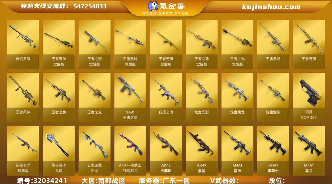L629605 【传说艾莉莎/传说灵眸/幻神*2+音效卡(宠儿+冠军之幻+荣耀世冠白鲨+电流骇客+黄忠)/星神+音效卡(枪娘默)/王者风神/裁决(异化之眼)/幻影/毁灭+音效卡(星空+张飞+墨兰)/白虎之魄/王者芳薇/火麒麟(关羽)/雷神/黑骑士(马超)/M4A1青龙/王者凤鸣/加特林炼狱+音效卡/烈龙云海/COP幻灵/柯尔特电竞装甲/斯泰尔枪娘暗刃/冠军之刃*2/4防王者潘多拉/4防王者影豹/】 会员等级0 英雄级武器数量73 【可二次实名】 【永久包赔】 【能人脸包赔】 【VIP 0】 【能排位】 【枪王】 传说武器1 王者炫金武器10 热门武器5 英雄级武器29 稀有武器12 暴走生化3 挑战大师1 角色7 稀有皮肤27 音效卡8 投掷武器11 传说武器:传说灵眸; 王者炫金武器:炫金黑龙,王者凰鸣,王者芳薇,王者风神,炫金毁灭,白虎之魄,王者之光,王者之势,王者之烈,炫金无影; 热门武器:Kar98K-星神,M200-幻神,COP 357-幻灵,Knife-冠军之刃,炼狱-迷你小钢; 英雄级武器:AWM-裁决,超新星-热带奇洋,龙啸-热带奇洋,黑武士-锦绣游龙,G36C-幻影,加特林-炼狱,龙啸,AA-12-雷霆,擎天-云海游龙,烈龙-云海游龙,幻灵之锋,M4A1-青龙,AK47-黑鲨,M4A1-黑龙,QBZ03-金色蔷薇,烈火-动感闪耀,天神-动感闪耀,屠龙-动感闪耀,无影-神兵利器,M4A1-雷神,屠龙,沙鹰-修罗,AWM-天龙,麒麟刺,AK47-火麒麟,Barrett-毁灭,柯尔特-电竞装甲,M4A1-黑骑士,Barrett-极光; 稀有武器:夺魂,加利尔ACE-零号,迷你白狐,牛牛-AK47,QBZ03-斯沃特,Cat-刀锋,迷你波特博士,毁灭-孙三炮,斯泰尔-枪娘暗刃,裁决-雪莉杨,雷神-小红,AWM-灵狐-15周年嘉年华; 暴走生化:双面神-竞魂,恶魔终结者-湮灭之柱,女皇终结者-魔龙之吻; 挑战大师:激光毁灭者III-白马银枪; 角色:传说艾莉莎,晴雅,角色-空,职业选手,超能女侍·觉,王者影豹,王者潘...