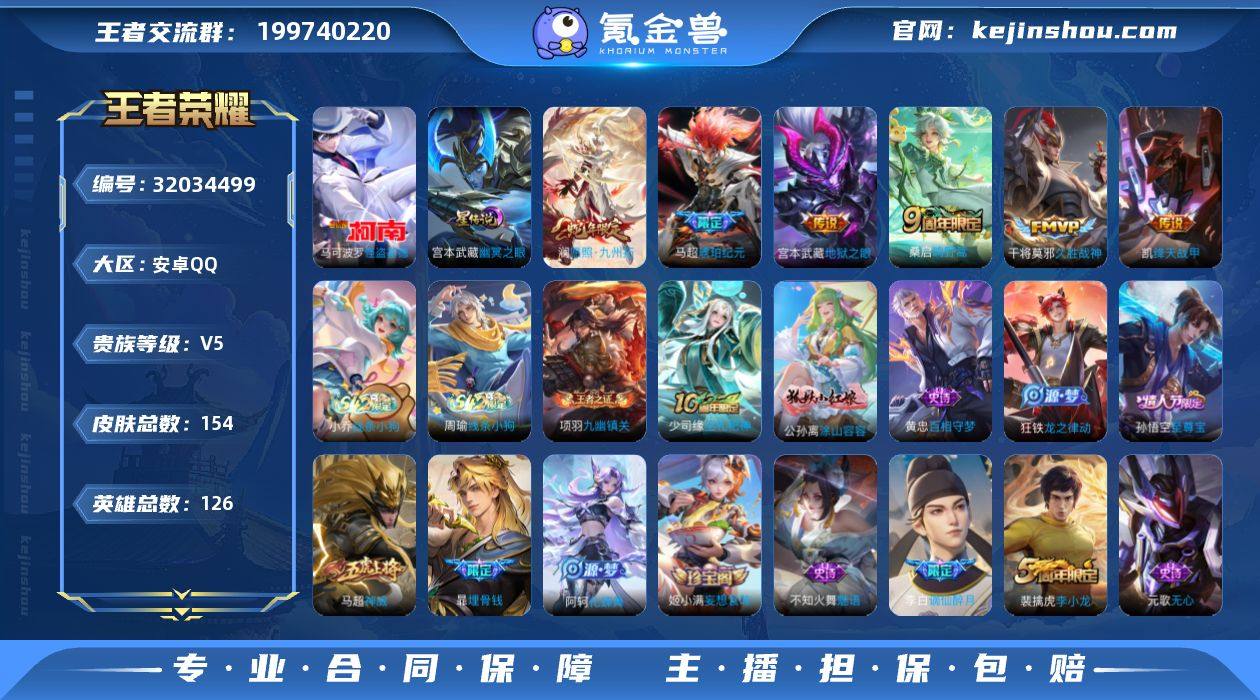 贵族等级:V5 典藏皮肤数:0 珍品无双皮肤数:0 无双皮肤数:0 珍品传说皮肤数:1 传说皮肤数:6 史诗皮肤数:40 皮肤数:154 英雄数:126 段位:至圣王者