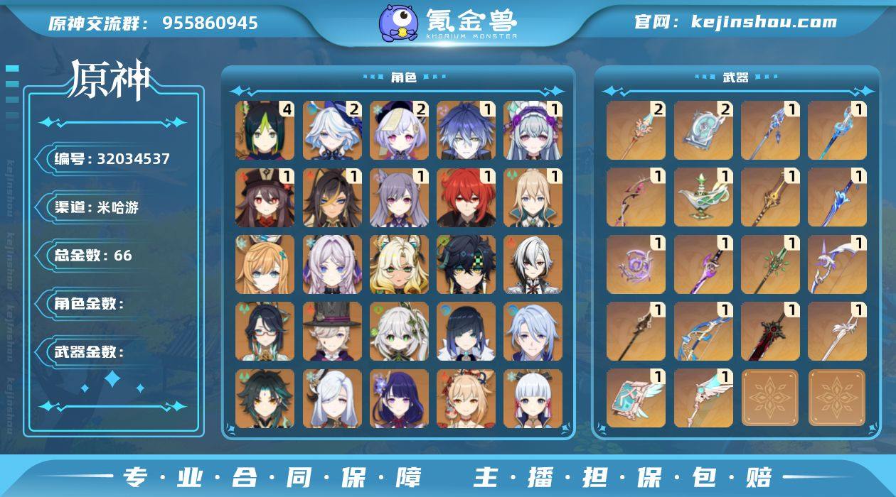 【原神】冒险等级:60,五星数量:49,五星角色:提纳里 * 4命,芙宁娜 * 2命,七七 * 2命,迪希雅 * 1命,梦见月瑞希 * 1命,菲林斯 * 1命,迪卢克 * 1命,胡桃 * 1命,刻晴 * 1命,琴 * 1命,莫娜,基尼奇,希诺宁,神里绫华,茜特菈莉,宵宫,达达利亚,申鹤,神里绫人,林尼,夜兰,闲云,爱可菲,阿蕾奇诺,纳西妲,甘雨,魈,雷电将军__五星武器:四风原典 * 2精,天空之脊 * 2精,最初的大魔术,静水流涌之辉,血染荒城,阿莫斯之弓,不灭月华,风鹰剑,和璞鸢,狼的末路,天空之卷,天空之翼,雾切之回光,终末嗟叹之诗,贯虹之槊,波乱月白经津,赤沙之杖,千夜浮梦__四星角色:班尼特 * 6命,行秋 * 6命,九条裟罗 * 6命,香菱 * 6命,久岐忍 * 6命,鹿野院平藏 * 6命,珐露珊 * 6命,砂糖 * 6命,多莉 * 6命,芭芭拉 * 6命,云堇 * 6命,早柚 * 6命,托马 * 6命,五郎 * 6命,烟绯 * 6命,重云 * 6命,诺艾尔 * 6命,罗莎莉亚 * 6命,北斗 * 6命,迪奥娜 * 5命,坎蒂丝 * 5命,辛焱 * 5命,雷泽 * 5命,菲谢尔 * 5命,琳妮特 * 5命,柯莱 * 4命,夏洛蒂 * 4命,夏沃蕾 * 4命,爱诺 * 4命,卡齐娜 * 3命,凝光 * 3命,嘉明 * 3命,绮良良 * 2命,瑶瑶 * 2命,米卡 * 2命,菲米尼 * 2命,莱依拉 * 1命,卡维 * 1命,蓝砚 * 1命,伊法 * 1命,赛索斯 * 1命,埃洛伊,奇偶·女性,奇偶·男性,欧洛伦,伊安珊,塔利雅