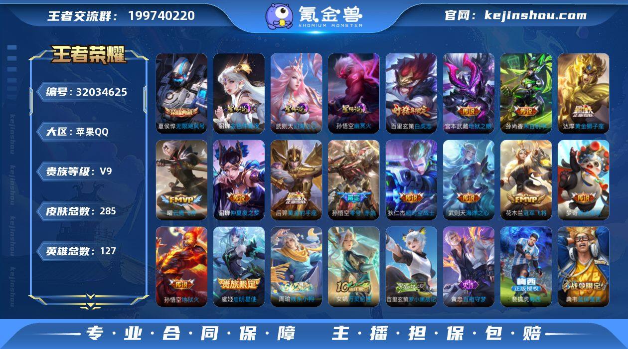 ky 苹果(q)区 285皮 2典藏 14传说 74限定 7王者印记 3星 亮点推荐:【无限飓风号 白虎志 冠军飞将 云鹰飞将 零号·赤焰 仲夏夜之梦】道具内容:133亲密玫瑰