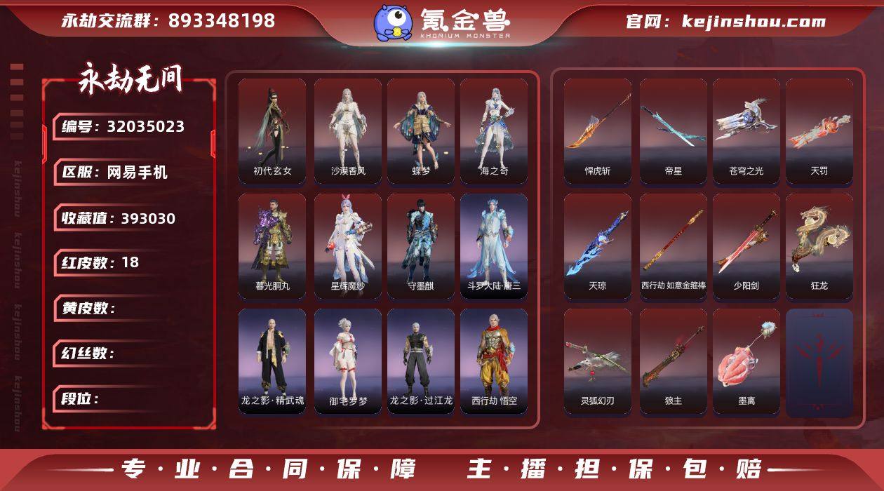 YJJ1827/4.3换绑/等级537/s19三人黄金4/21红623金393030收藏值/墨离/少阳剑/灵狐幻刃/帝星/狼主/悍虎斩/西行劫·如意金箍棒/天琼/狂龙/天罚/苍穹之光/初代玄女/星辉魔纱/新倩女幽魂·长天藏锦/戎金狼//熛怒炼火/蝶梦/海之奇/暮光胴丸/沙漠香风/守墨麒/斗罗大陆·唐三/御翔云/龙之影·精武魂/御宅罗梦/夏日派对·弄潮逐浪/龙之影·过江龙/西行劫·悟空/拳皇勾玉/夏日派对·半夏晚风/幻丝114393/已绑定手游
