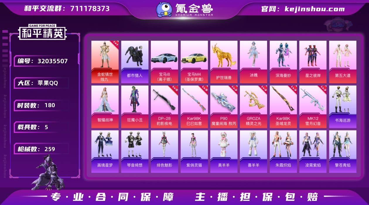 【AZH2962】苹果 手Q【五级云歌一级烛九 都市第五大道狂魇小丑 5载具】2神装-7粉装-8特效枪-5载具-12粉色飞行器-92231热力值-8王牌印记-180套装-259枪皮 【红色神装等级】:灵驹仙姬-云歌(五级),金蛇镇世-烛九(一级) 【红色角色神装】:灵驹仙姬-云歌,金蛇镇世-烛九 【热门品类】:套装-都市猎人,套装-小丑鱼 【粉色套装】:粉装-深海曼妙,粉装-星之彼岸,粉装-第五大道,角色-智耀战神,角色-狂魇小丑,角色-冰魄,角色-罪夜之冕 【粉色枪皮等级】:SCAR-L-灵驹仙姬(三级),GROZA-精灵之光(三级),P90-魔童闹海 敖丙(三级),Kar98K-巳巳如意(五级),Kar98K-圣域龙灵(三级),Mk14-福马献瑞(五级),MK12-雪月幻音(三级),DP-28-豹影疾电(五级) 【粉色载具】:法拉利Purosangue(纽博格林银),宝马i8(离子银),宝马M4(圣保罗黄),护世瑞兽,九霄玄鹿 【粉色枪皮】:SCAR-L-灵驹仙姬,GROZA-精灵之光,P90-魔童闹海 敖丙,Kar98K-巳巳如意,Kar98K-圣域龙灵,Mk14-福马献瑞,MK12-雪月幻音,DP-28-豹影疾电 【粉色飞行器】:香车宝马飞行器,炫彩糖果飞行器,歌者泠鸢飞行器,曦光华影飞行器,万象金身飞行器,圣域金龙飞行器,雀灵庇佑飞行器,双重狂想飞行器,灵珠游龙飞行器,极意拳锋飞行器,云梦轻舟飞行器 【粉色降落伞】:绝对恒星降落伞,天启纪元降落伞,神秘黑猫降落伞,古堡领主降落伞,扶摇飞仙降落伞,星之彼岸降落伞,暗夜鎏金降落伞,炫光之旅降落伞,光之祷告降落伞,霓虹漫游降落伞,金丰海韵降落伞,精灵之光降落伞,金蛇镇世降落伞,翎光蝶翼降落伞,雪月幻音降落伞,智耀战神降落伞,星穹咏叹调降落伞,时光之吻降落伞,双重狂想降落伞,宁雨蝶降落伞,无垠阁降落伞,魔童闹海 敖丙降落伞,异瞳寒姬降落伞,炫彩糖果降落伞,罪夜之冕降落伞,灵驹仙姬降落伞,镜花水月降落伞 【稀有套装...