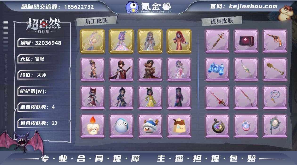 红色皮肤数量:0 金色皮肤数量:4 紫色皮肤数量:9 道具皮肤数量:23 莲华渡,遗失的童话,圣光之谕,镜花辞