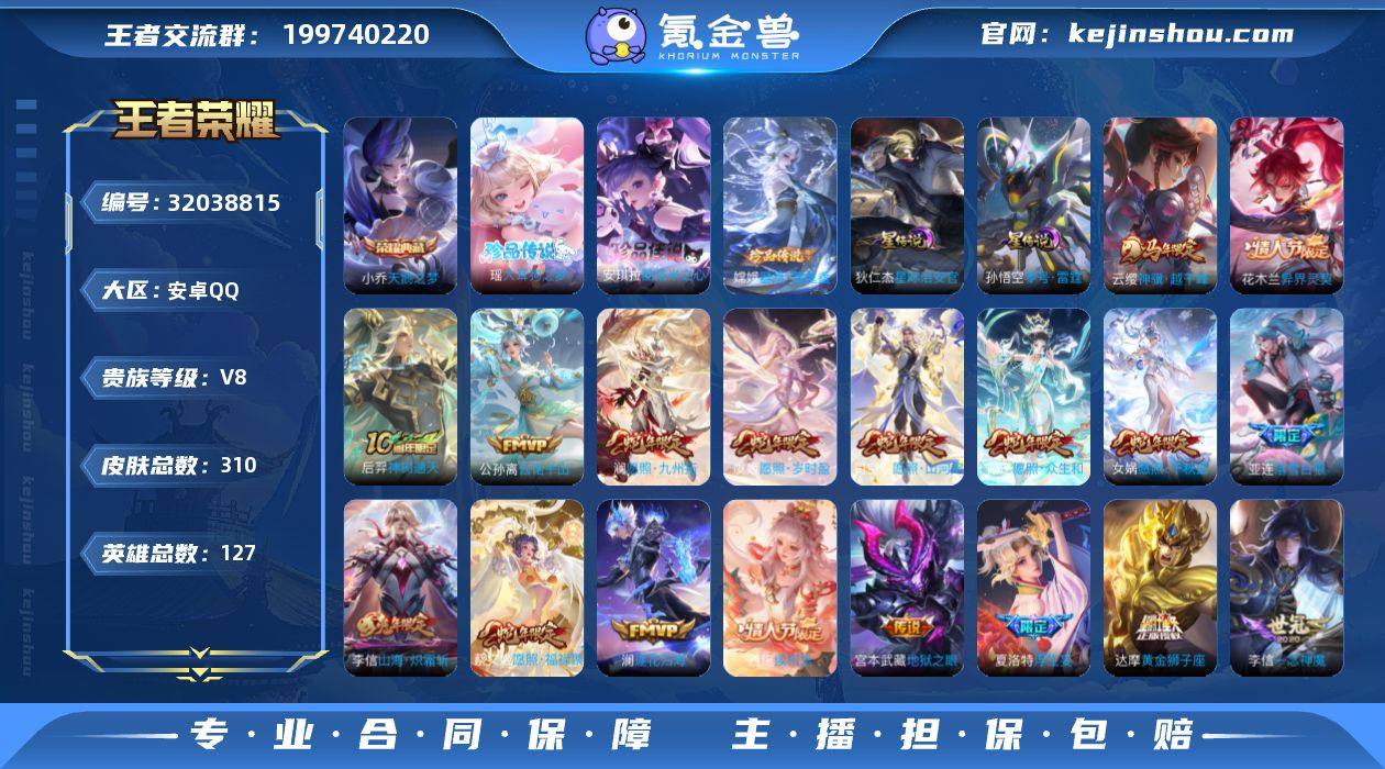 【店铺主推·再消费12940点券升级到V9·40段对抗路·万战金标白起·全皮夏洛特·全皮司空震·天鹅之梦·器灵落星盏·大耳狗之梦·酷洛米之心·云诺千山,西施续相思,司空震愿照山河定,女娲愿照千秋盛,妲己愿照众生和,澜愿照九州拓,蔡文姬愿照福禄聚,虞姬愿照岁时盈,云缨幻光神枪,裴擒虎祥瑞亨通,嬴政玄雷天君,桑启鸣野蒿,铠冥王哈迪斯,亚连落雪白狼,典韦战鼓燎原,澜逐花归海,夏洛特浮生妄,李信山海炽霜斩,吕布怒海麟威,马超无双飞将,虞姬启明星使,孙悟空零号赤焰·可二次】YXw16077-安卓Q-127英雄-310皮肤-15王者印记-260铭文-贵族积分8w【贵族8】【1典藏·3珍品·2星传说·33传说·41按键·230幸运值】【因赛季更新游戏段付以上号为准!】 【英雄全皮】:达摩全皮,孙权全皮,敖隐全皮,夏洛特全皮,司空震全皮,空空儿全皮,影全皮 【荣耀典藏】:小乔天鹅之梦 【珍品传说】:嫦娥器灵落星盏,瑶大耳狗之梦,安琪拉酷洛米之心 【星元皮肤】:孙悟空零号雷霆,狄仁杰星际治安官 【传说皮肤】:后羿神树通天,公孙离云诺千山,西施续相思,司空震愿照山河定,女娲愿照千秋盛,妲己愿照众生和,澜愿照九州拓,蔡文姬愿照福禄聚,虞姬愿照岁时盈,云缨幻光神枪,裴擒虎祥瑞亨通,嬴政玄雷天君,桑启鸣野蒿,铠冥王哈迪斯,亚连落雪白狼,典韦战鼓燎原,澜逐花归海,夏洛特浮生妄,李信山海炽霜斩,吕布怒海麟威,马超无双飞将,虞姬启明星使,孙悟空零号赤焰,李信一念神魔,刘备时之恋人,干将莫邪久胜战神,达摩黄金狮子座,后羿黄金射手座,宫本武藏地狱之眼,孙悟空地狱火,狄仁杰超时空战士 【限定皮肤】:铠冥王哈迪斯,蔡文姬夏日便利店,虞姬夏日便利店,姜子牙天穹之誓,狄仁杰阴阳师,赵云皇家上将,墨子神迹守卫,高渐离玩趣恶龙,周瑜赤莲之焰,元歌无心,马可波罗山海玄木吟,狄仁杰魔术师,狄仁杰...