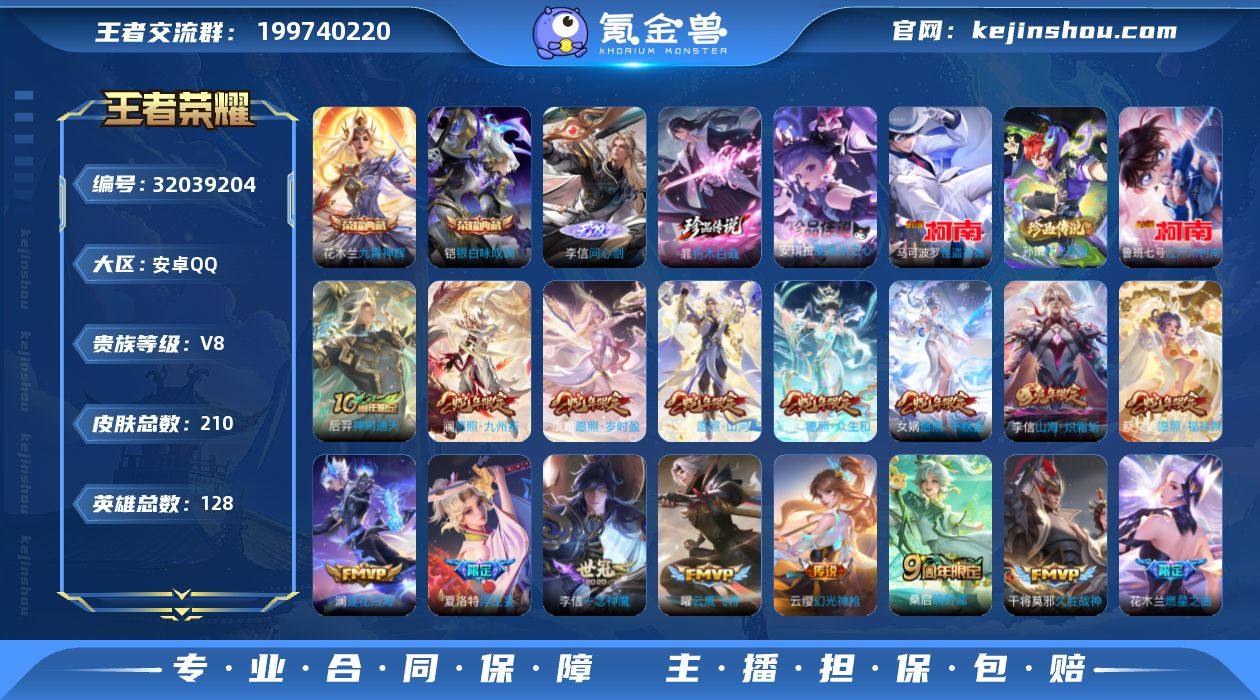 【W5889】亮点-2.9k场次.满蛇.李信全皮.33个性按键(热门皮肤)问心剑.银白咏叹调.九霄神辉.朽木白哉.怪盗基德.山海炽霜斩.一念神魔.安卓Q-可二次-贵8-128英雄-210皮肤-2典藏-1无双-5珍品传说-20传说-75限定-贵族积分6.7万-营地ID:1801813385