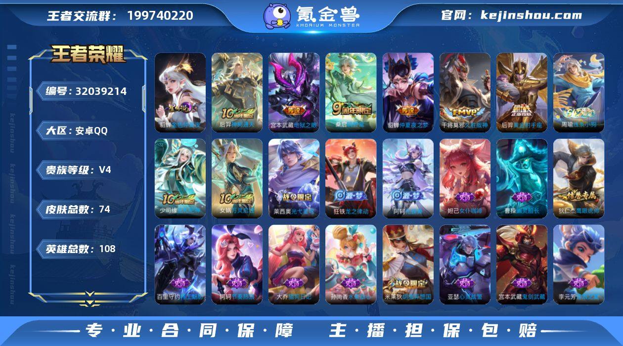 【精品小号·金色仲夏夜·久胜战神·黄金射手座】【可二次】YXw17624-安卓Q-108英雄-74皮肤-4王者印记-180铭文-贵族积分0w【贵族4】【1星传说·6传说·1按键】【因赛季更新游戏段付以上号为准!】 【英雄全皮】:孙权全皮,敖隐全皮 【星元皮肤】:貂蝉金色仲夏夜 【传说皮肤】:后羿神树通天,桑启鸣野蒿,干将莫邪久胜战神,后羿黄金射手座,貂蝉仲夏夜之梦,宫本武藏地狱之眼 【限定皮肤】:虞姬夏日便利店,姜子牙天穹之誓,狄仁杰万华元夜,项羽海滩派对,钟馗驱傩正仪,裴擒虎擒涛扼浪,米莱狄胡桃异想国,鲁班大师探海日志,桑启海盐诗旅,艾琳女武神,鬼谷子天穹祈灯,沈梦溪龙舞盛年,刘邦剑破天穹 【赛季限定】:狄仁杰万华元夜,钟馗驱傩正仪,桑启海盐诗旅,裴擒虎擒涛扼浪,鲁班大师探海日志,鬼谷子天穹祈灯,刘邦剑破天穹,姜子牙天穹之誓,东皇太一噬灭天穹,太乙真人谧流熔炉 【战令限定】:米莱狄胡桃异想国,虞姬夏日便利店,莱西奥光弋星穹,明世隐往忆晖光,周瑜线条小狗 【史诗皮肤】:周瑜线条小狗,少司缘巫礼祀神,女娲万灵启世,莱西奥光弋星穹,狂铁龙之律动,阿轲化蝶舞,米莱狄胡桃异想国,狄仁杰鹰眼统帅,大乔猫狗日记,阿轲节奏热浪,李元芳逐浪之夏,百里守约特工魅影,亚瑟心灵战警,曹操幽灵船长,妲己女仆咖啡,妲己魅力维加斯,孙尚香水果甜心,宫本武藏鬼剑武藏 【其他皮肤】:吕布舞狮寰,艾琳鹤鸣心笺,孙权径山谋武,明世隐往忆晖光,哪吒罗小黑战记,太乙真人谧流熔炉,苍苍林狼骑,东皇太一噬灭天穹,盘古敬我三分,虞姬夏日便利店,姜子牙天穹之誓,刘邦剑破天穹,钟无艳春野之旅,沈梦溪龙舞盛年,海诺时空谍影,鬼谷子天穹祈灯,后羿完美运算,鲁班大师探海日志,裴擒虎擒涛扼浪,桑启海盐诗旅,钟馗驱傩正仪,狄仁杰万华元夜,哪吒次元突破,小乔丁香结,诸葛亮掌控之力...