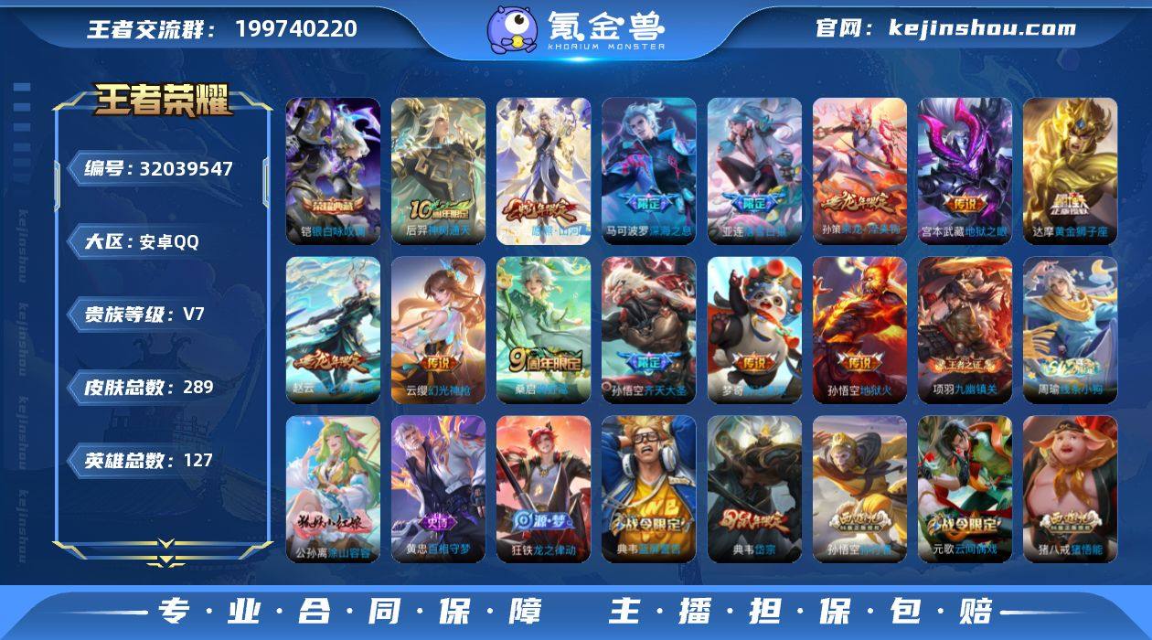 【WZSA1405】贵族7/皮肤289/典藏1/传说13/史诗74/英雄127/亚连全皮/影全皮/银白咏叹调/神树通天/愿照·山河定/幻光神枪/鸣野蒿/落雪白狼/乘龙·淬吴钩/乘龙·铭钟鼎/齐天大圣/深海之息/黄金狮子座/胖达荣荣/地狱之眼/地狱火/蒙犽顽岩魄/天穹之誓(s36)/谪仙醉月/阴阳师/皇家上将/神迹守卫-墨子/狮舞东方/高山流水/玩趣恶龙/幻夜卜梦/云间偶戏/无心/朔风刀(s17)/蓝屏警告/岱宗/魔术师/万华元夜(s22)/沙漠行僧(s26)/海滩派对/醍醐杖(s20)/航海奇遇记/演武夺筹(s23)/金庭之子(s27)/潮玩骑士王/孙行者/御旌(s15)/圣弓游侠/云中旅人(s29)/神迹守卫-钟馗/驱傩正仪(s24)/朔望之晖/胡桃夹子/真爱魔法/黎明之约/原初探秘者(s21)/火炮绅士/千军破阵(s25)/混沌棋(s18)/大漠名商(s28)/疑决卦(s19)/李小龙/擒涛扼浪(s31)/御霄(s14)/纤云弄巧/御銮(s16)/猪悟能/梁祝/拒霜思/探海日志(s32)/海盐诗旅(s30)/女武神/江河有灵/古海寻踪(s33)/百解令(蒙犽)/蒙恬荣光圣徽/鬼谷子天穹祈灯(S34)/龙武盛年/剑破天穹(s35)/程咬金群星魔术团/青焰无极/苍威无极/刘备异域游侠/熔金海岸/谧流熔炉/逆浪荇歌/荣光之誓/星界战将/九幽镇关/破空之剑/神迹守卫/线条小狗-周瑜/涂山容容/百相守梦-黄忠/龙之律动/绮世丹青/糖绘人间/器灵·浮梦炉/末日机甲-莱西奥/雪上飞焰/暗渊魔法/修罗/白蛇/晚萤/鹰眼统帅/猫狗日记-大乔/猫狗日记-孙策/节奏热浪/星夜王子/功夫厨神/逐浪之夏/天才门将/舞动绿茵/曙光守护者/特工魅影/心灵骇客/心灵战警/暗隐猎兽者/缤纷独角兽/乘风破浪/德古拉伯爵/水晶猎龙者/乱世虎臣/末日机甲-吕布/千年之狐/幽灵船长/绅士熊喵/圣诞狂欢/金属风暴/龙骑士/魅力维加斯/水果甜心/鬼剑武藏/地狱岩魂/偶像歌手/冰雪圆舞曲/圣诞恋歌/未来纪元-赵云/紫霞仙子/兰陵王雾影缉谜/鹤鸣心笺/罗小黑战记/克喵/踏浪烽翎/云械蓝图/命运加冕/灵野札记/春野...
