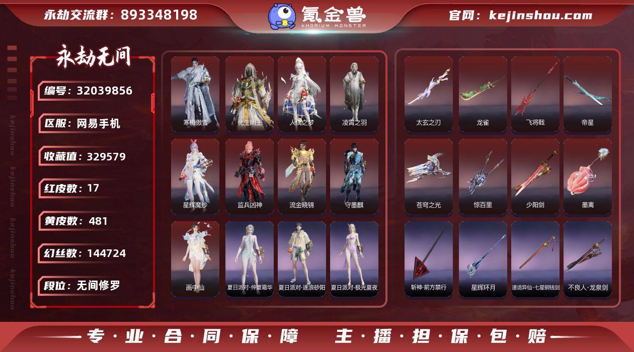 售永劫账号17红481金有水战马变身器不少双排修罗白泽月卡还有三四张手机号可换绑幻丝还有14w泳装有三套顾清寒希腊张起灵的钩索皮有墨离和匣中女郎