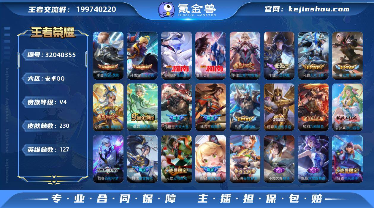 安卓Q-V7-永恒钻石III段位-127英雄-230皮肤-2典藏皮肤-2珍品传说-10传说-64史诗HZ263402 【荣耀典藏】:孙悟空全息碎影,李白鸣剑曳影 【珍品传说】:鲁班七号江户川柯南,马可波罗怪盗基德 【传说皮肤】:桑启鸣野蒿,孙悟空齐天大圣,小乔山海琳琅生,李信山海炽霜斩,吕布怒海麟威,橘右京枫霜尽,马超无双飞将,曜云鹰飞将,李信一念神魔,后羿黄金射手座 【限定皮肤】:狄仁杰阴阳师,小乔山海琳琅生,赵云皇家上将,墨子神迹守卫,妲己时之奇旅,高渐离玩趣恶龙,钟无艳超时空战士,扁鹊奇幻香踪,白起夜都怪侠,芈月幻夜卜梦,元歌云间偶戏,元歌无心,夏侯惇朔风刀,甄姬落雪兰心,狄仁杰魔术师,狄仁杰万华元夜,达摩星际陆战队,达摩沙漠行僧,项羽海滩派对,老夫子航海奇遇记,程咬金演武夺筹,韩信傲雪梅枪,王昭君午后时光,兰陵王金庭之子,橘右京枫霜尽,亚瑟潮玩骑士王,孙悟空齐天大圣,刘备百相守梦,李元芳云中旅人,钟馗驱傩正仪,杨戬潮玩骑兵,太乙真人华丽摇滚,鬼谷子五谷丰年,黄忠火炮绅士,苏烈千军破阵,弈星混沌棋,沈梦溪大漠名商,明世隐疑决卦,明世隐吟游魔法,裴擒虎擒涛扼浪,狂铁电玩高手,米莱狄胡桃异想国,李信山海炽霜斩,盾山梦圆繁星,嫦娥暖冬兔眠,西施玲珑珍味,鲁班大师探海日志,镜匿光追影者,桑启海盐诗旅,暃星界游侠,戈娅驭风魔法,阿古朵江河有灵,张良古海寻踪,鬼谷子天穹祈灯,姬小满妄想食味,沈梦溪龙舞盛年,刘邦剑破天穹 【年限皮肤】:小乔山海琳琅生,李信山海炽霜斩 【赛季限定】:夏侯惇朔风刀,弈星混沌棋,明世隐疑决卦,狄仁杰万华元夜,程咬金演武夺筹,钟馗驱傩正仪,苏烈千军破阵,达摩沙漠行僧,兰陵王金庭之子,沈梦溪大漠名商,李元芳云中旅人,桑启海盐诗旅,裴擒虎擒涛扼浪,鲁班大师探海日志,张良古海寻踪,鬼谷子天穹祈灯,刘邦剑...