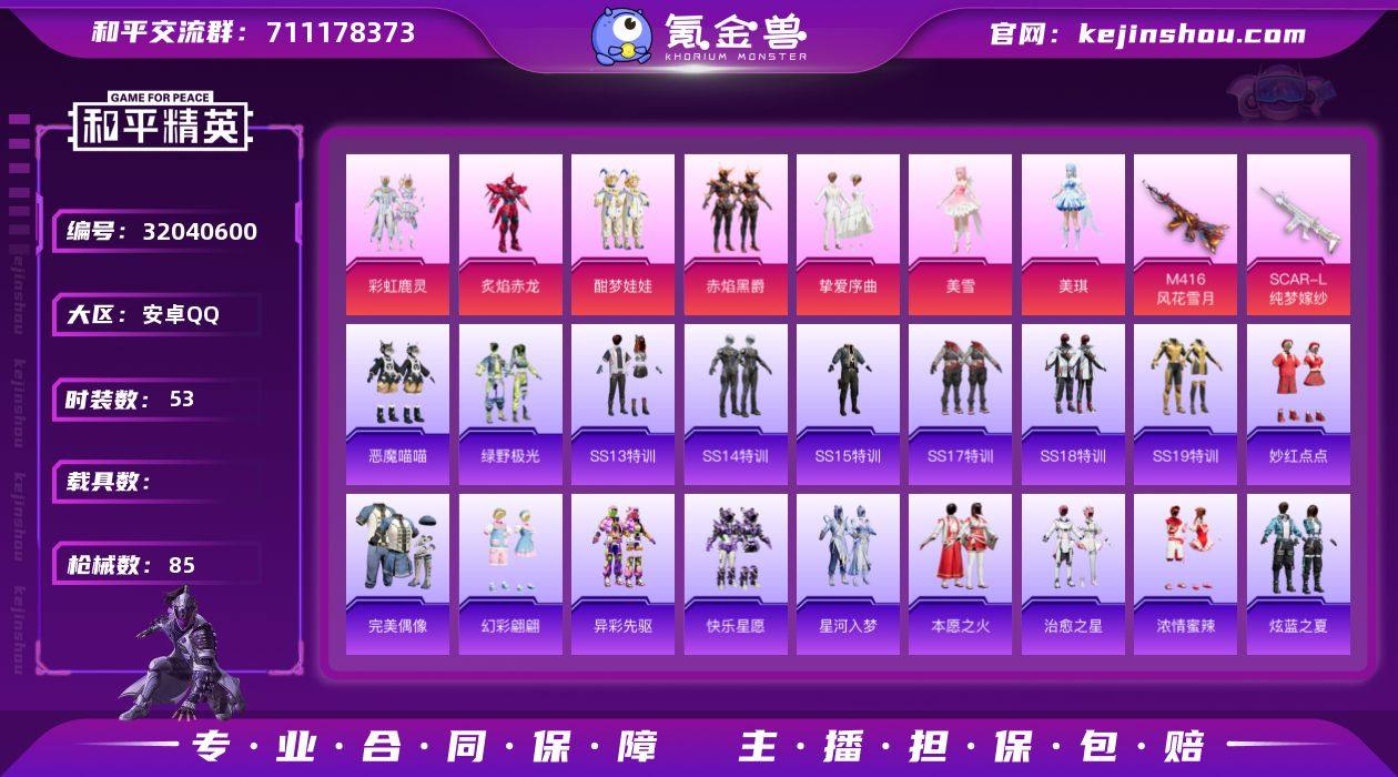 安卓 手Q-7粉装-3特效枪-0载具-26010热力值-0印记-53套装-85枪皮 【0载具】 【53套装】 套装-骑行爱好者 套装-竞技名士 套装-酒红色名流 套装-长空猛禽 套装-完美偶像 套装-蓝彩潮人 套装-魅力单车 套装-破晓战魂 套装-酷潮明星 套装-破蛋小黄鸡 套装-纯白誓言 套装-本愿之火 套装-辉星之火 套装-萌趣颜团子 套装-SS18特训 套装-镭射皇者 套装-银白舞王 套装-彩虹鹿灵 套装-治愈之星 套装-科技之星 套装-SS13特训 套装-星河入梦 套装-热情海星 套装-纯真浪花 套装-SS14特训 套装-快乐星愿 套装-SS15特训 套装-炙焰赤龙 套装-SS17特训 套装-异彩先驱 套装-霓虹极客 套装-酣梦娃娃 套装-绿野极光 套装-空投萌叽 套装-SS19特训 套装-浓情蜜辣 套装-飞驰魅影 套装-音速流光 套装-赤焰黑爵 套装-炫蓝之夏 套装-恶魔喵喵 套装-挚爱序曲 套装-妙红点点 套装-幻彩翩翩 套装-青玉碎影 套装-焰鹰斗篷 套装-幻羽潜行 套装-SS27特训 套装-SS28特训 角色-美雪 角色-美琪 角色-白光莹 套装-海盐绵绵冰 【7粉装】 粉装-彩虹鹿灵 粉装-炙焰赤龙 粉装-酣梦娃娃 粉装-赤焰黑爵 粉装-挚爱序曲 角色-美雪 角色-美琪 【3特效枪】 SCAR-L-纯梦嫁纱 M416-风花雪月 M762-电糖天使 【1飞行器】 红色滑翔尾迹 【0热门】 营地ID:742815996