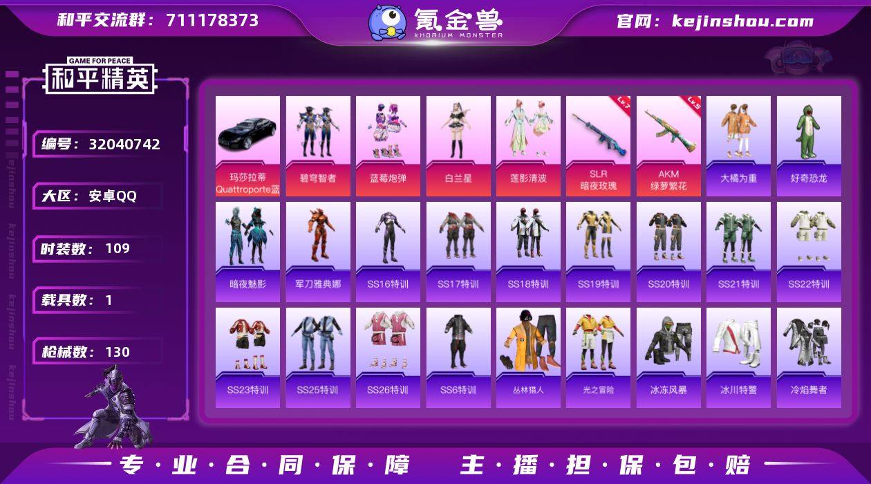 安卓 手Q-4粉装-2特效枪-1载具-47710热力值-0印记-109套装-130枪皮 【0红装】 【4粉装】 粉装-蓝莓炮弹 粉装-碧穹智者 角色-白兰星 粉装-莲影清波 【2特效枪】 AKM-绿萝繁花 SLR-暗夜玫瑰 【1载具】 玛莎拉蒂Quattroporte(夜幕蓝) 【109套装】 套装-特训学院 套装-白色伏地魔 套装-登山爱好者 套装-竞技名士 套装-湖蓝色名流 套装-猛禽 套装-长空猛禽 套装-竞技勇士朋克 套装-黎明保卫者 套装-海岛探路者 套装-雨林探路者 套装-冷焰舞者 套装-战地督导 套装-特殊使命 套装-灰色格斗者 套装-冰冻风暴 套装-怒火燎原 套装-魅力单车 套装-绮丽涂鸦 套装-破晓战魂 套装-荣耀 套装-沙漠兵团 套装-丛林猎人 套装-雪山精英 套装-酷潮明星 套装-幻世战舞者 套装-甜蜜菠萝 套装-清新柠檬 套装-暗影哥特 套装-缤纷果语 套装-龙魂突击队 套装-冰川特警 套装-麻辣教官 套装-粉红小猪 套装-疯狂小兔子 套装-圣诞大吉 套装-好奇恐龙 套装-北国孤狼 套装-SS6特训 套装-黑色刀锋 套装-霓虹街区 套装-智慧之神 套装-大橘为重 套装-夏日音浪 套装-探宝勇士 套装-4AM战队服 套装-牛气满满 套装-玄武圣者 套装-白虎圣者 套装-牛气冲天 套装-SS18特训 套装-银白舞王 套装-科技之星 套装-飞行日记 套装-天籁歌者 套装-蝎王蛇后 套装-SS16特训 套装-暴风机械师 套装-时空追击者 套装-暗夜魅影 套装-暗夜傀儡 套装-SS17特训 套装-瑞龙福将 套装-团圆交子 套装-蓝莓炮弹 套装-爆裂葡萄 套装-福星高照 套装-虎虎生威吉莉 角色-军刀雅典娜 套装-异彩先驱 套装-霓虹极客 套装-SS19特训 套装-SS20特训 套装-猎梦纪元 套装-甜心亚梦 套装-虚音幻奏 套装-碧穹智者 套装-SS21特训 套装-萌趣咩咩 套装-娇憨猪猪 套装-玉兔迎春 套装-SS22特训 套装-和煦暖阳 套装-田园牧歌 套装-轻风白浪 套装-白啸长虹 套装-光之冒险 套装-绯格组合 套装-SS23特...