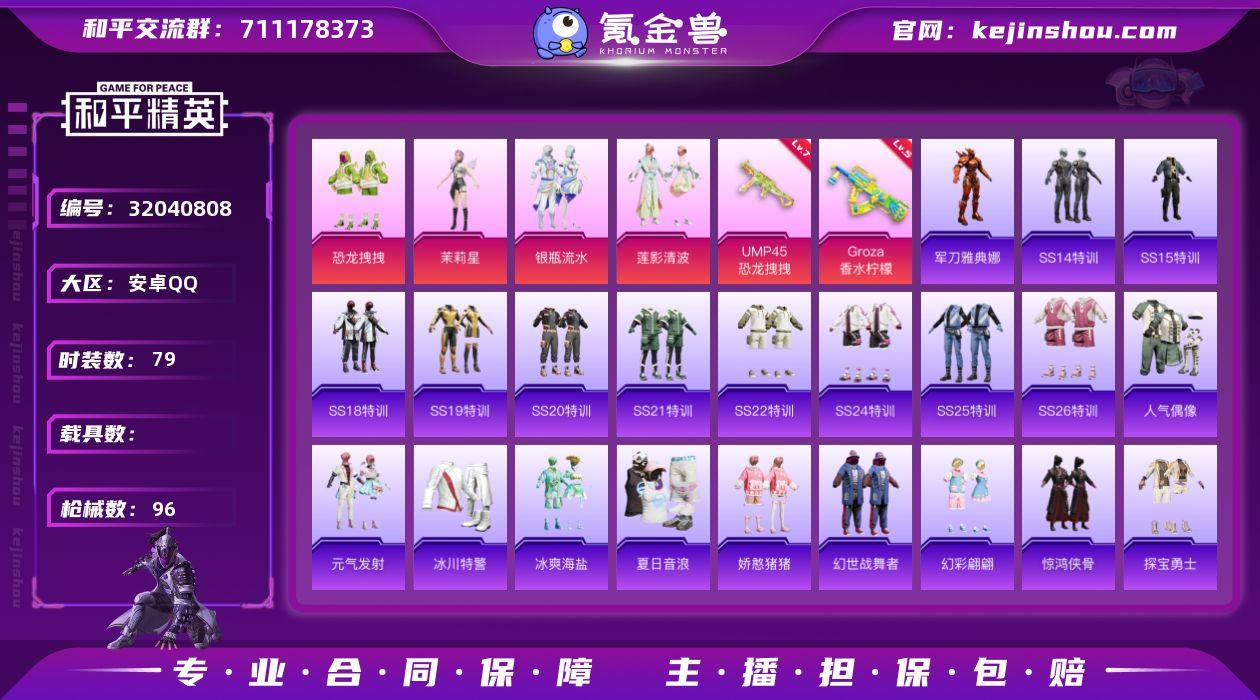 安卓 手Q-4粉装-2特效枪-0载具-29703热力值-2印记-79套装-96枪皮 【0红装】 【4粉装】 粉装-银瓶流水 粉装-恐龙拽拽 角色-茉莉星 粉装-莲影清波 【2特效枪】 GROZA-香水柠檬 UMP45-恐龙拽拽 【0载具】 【79套装】 套装-特训学院 套装-猎鹰 套装-青年教官 套装-橘黑制服 套装-红色运动 套装-黄色运动 套装-蓝色运动 套装-黄色伏地魔 套装-白色伏地魔 套装-黑色伏地魔 套装-骑行爱好者 套装-竞技名士 套装-深蓝色名流 套装-酒红色名流 套装-长空猛禽 套装-蓝色守护者 套装-特战装甲 套装-特殊使命 套装-人气偶像 套装-热血骑手 套装-魅力单车 套装-狂战萌兔 套装-竞技达人朋克 套装-都市漫游者 套装-破晓战魂 套装-热血青春 套装-幻世战舞者 套装-甜蜜菠萝 套装-暗影哥特 套装-冰川特警 套装-极速红龙 套装-麻辣教官 套装-霓虹街区 套装-纯白誓言 套装-萌黄之夏 套装-夏日音浪 套装-探宝勇士 套装-JDE战队服 套装-银瓶流水 套装-萌趣颜团子 套装-特种颜团子 套装-SS18特训 套装-迅捷之星 套装-治愈之星 套装-科技之星 套装-冰爽海盐 套装-浪漫樱花 套装-SS14特训 套装-SS15特训 套装-福星高照 套装-恐龙拽拽 角色-军刀雅典娜 套装-SS19特训 套装-飞驰魅影 套装-音速流光 套装-炫蓝之夏 套装-SS20特训 套装-甜心亚梦 套装-虚音幻奏 套装-SS21特训 套装-萌趣咩咩 套装-娇憨猪猪 套装-SS22特训 套装-幻彩翩翩 套装-SS24特训 套装-龟仙人 套装-涂山之恋 套装-SS25特训 套装-惊鸿侠骨 套装-锦衣飞扬 角色-茉莉星 套装-莲影清波 套装-绝对偶像 套装-元气发射 套装-SS26特训 套装-空岛之星 套装-SS27特训 套装-SS28特训 套装-海盐绵绵冰 【1飞行器】 粉色滑翔尾迹 【0热门】 营地ID:747500512