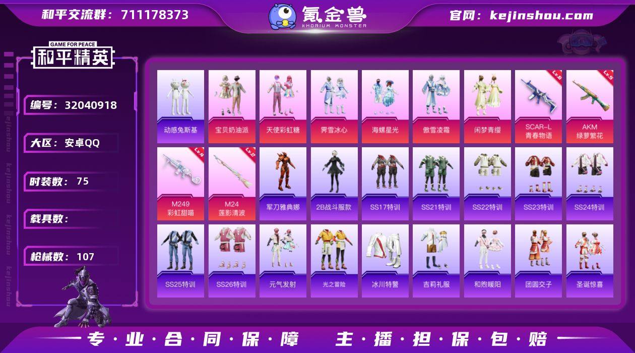 安卓 手Q-6粉装-4特效枪-0载具-36038热力值-0印记-75套装-107枪皮 【0红装】 【6粉装】 粉装-宝贝奶油派 粉装-天使彩虹糖 粉装-傲雪凌霜 粉装-霁雪冰心 粉装-海螺星光 粉装-闲梦青缨 【4特效枪】 AKM-绿萝繁花 SCAR-L-青春物语 M24-莲影清波 M249-彩虹甜喵 【0载具】 【75套装】 套装-特训学院 套装-黑色伏地魔 套装-竞技名士 套装-长空猛禽 套装-街头潮人 套装-怒火燎原 套装-魅力单车 套装-耀眼新星 套装-竞技达人朋克 套装-热血青春 套装-极地朋克 套装-甜蜜熊情侣 套装-青涩时光 套装-冰川特警 套装-麻辣教官 套装-宝贝奶油派 套装-天使彩虹糖 套装-霓虹街区 套装-白熊同盟 套装-动感兔斯基人偶服 套装-牛气满满 套装-牛气冲天 套装-飞行日记 套装-吉莉礼服 套装-快乐星愿 套装-SS17特训 套装-瑞龙福将 套装-团圆交子 套装-福星高照 角色-军刀雅典娜 套装-浓情蜜辣 套装-傲雪凌霜 套装-霁雪冰心 套装-圣诞惊喜 套装-SS21特训 套装-暖心熊熊 套装-萌趣咩咩 套装-娇憨猪猪 套装-荷畔雨呱 套装-酸甜橘柚 套装-玉兔迎春 套装-SS22特训 套装-和煦暖阳 套装-田园牧歌 套装-轻风白浪 套装-海螺星光 套装-光之冒险 套装-SS23特训 套装-莱茵河畔 套装-神气柴柴 套装-懵萌河马 套装-柠萌假日 套装-SS24特训 套装-闲梦青缨 套装-龟仙人 套装-涂山之恋 套装-SS25特训 套装-金戈铁马 套装-惊鸿侠骨 套装-锦衣飞扬 套装-晨曦薄雾 套装-绝对偶像 套装-元气发射 套装-牛仔情诗 角色-2B战斗服款 套装-龙的传人 套装-SS26特训 套装-快闪甜心 套装-春光漫游 套装-粉锦千层 套装-空岛之星 套装-贝斯之夜 套装-焰鹰斗篷 套装-幻羽潜行 套装-SS27特训 【1飞行器】 绒雪飘舞飞行器 【0热门】 营地ID:764458570