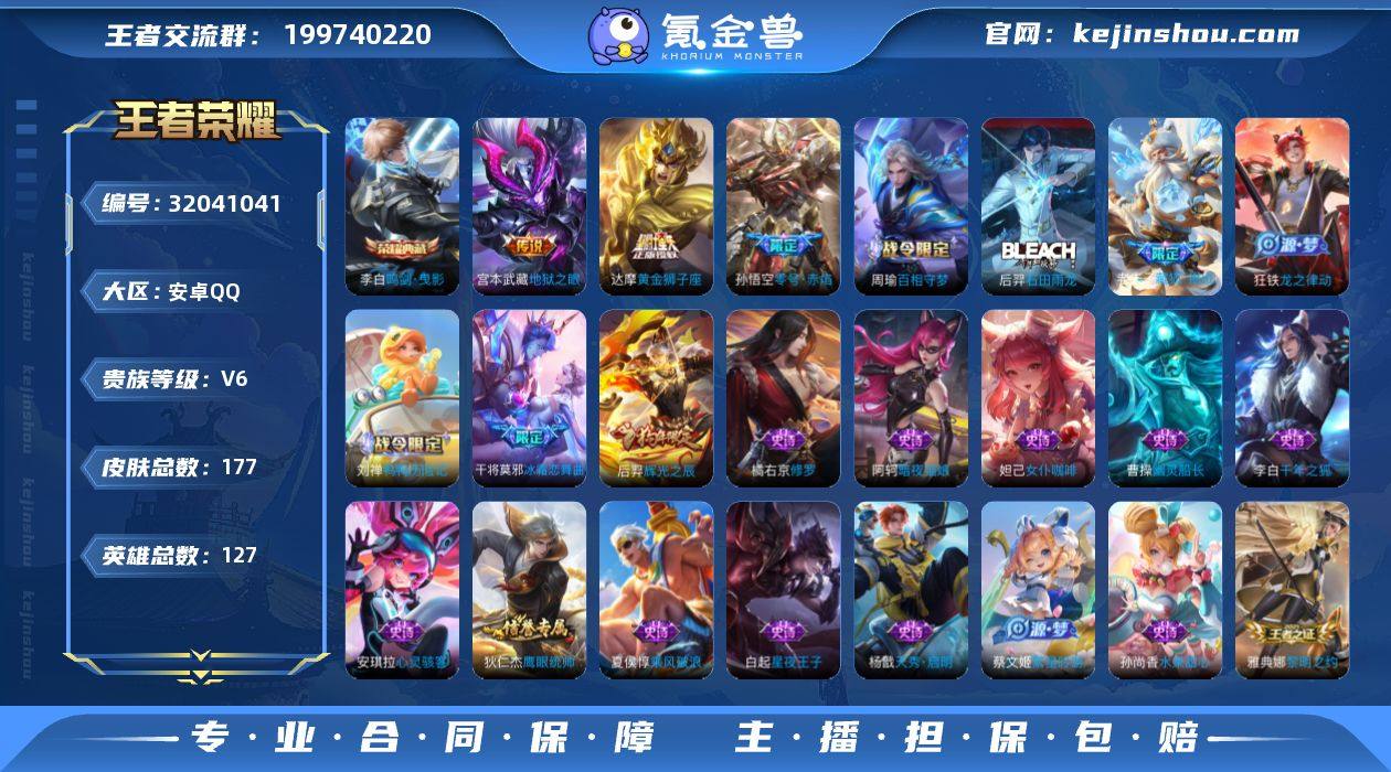 V6 1典藏 1珍品传说 6传说 127英雄 177皮肤 可修改实名 男号 【英雄全皮】影全皮,大禹全皮 【稀有英雄】大司命,嬴政(始皇帝),韩信(韩跳跳),夏洛特(夏师傅),艾琳,橘右京(橘子),娜可露露(鸟人),不知火舞,赵云,金蝉(唐僧),戈娅 【荣耀水晶】鸣剑·曳影 【珍品传说】黑崎一护 【传说皮】神骥·镇沧海,黄金狮子座,零号·赤焰,地狱之眼 【珍宝阁皮】妄想食味 【赛季/战令皮】海盐诗旅(s30),青焰无极,烛龙(s10),穷奇(s12),御狮(s13),御霄(s14),御旌(s15),御銮(s16),朔风刀(s17),混沌棋(s18),疑决卦(s19),醍醐杖(s20),原初探秘者(s21),万华元夜(s22),演武夺筹(s23),驱傩正仪(s24),猎兽之王,白昼王子,朔望之晖,蓝屏警告,神迹守卫-钟馗,狮舞东方,单词大作战,潮玩骑士王,云间偶戏,航海奇遇记,大漠名商(s28),云中旅人(s29) 【史诗皮】蔬乡物语(鲁班七号),线条小狗-周瑜,九幽镇关,线条小狗-小乔,万灵启世,鸭鸭历险记-刘禅,涂山容容,百相守梦-周瑜,龙之律动,石田雨龙,藏狐·褐绒,百相守梦-黄忠,千年之狐,冰冠公主,偶像歌手,暗夜猫娘,乱世虎臣,节奏热浪,修罗,女仆咖啡,摇滚巨星,水果甜心,星夜王子,心灵骇客,幽灵船长,鬼剑武藏,心灵战警,天秀·启明,繁星吟游(呼啦呼啦),缤纷独角兽,乘风破浪,逐浪之夏,金属风暴,鹰眼统帅,暗夜贵公子,魅力维加斯,黎明之约,未来纪元-赵云 【限定皮】时雨天司(水龙头),青龙志(铠年限),武圣,梁祝,李小龙,辉光之辰,默契交锋-花木兰,冰霜恋舞曲 【普通皮】谧流熔炉,雪境奇遇-西施,星梦巡礼,玫蓝誓约,街头霸王,魅影绮裳,虚灵犬护,荣光之誓,鹤鸣心笺,罗小黑战记-哪吒,鸭鸭历险记-沈梦溪,灵野札记,布丁狗之约,踏浪烽翎,百相守梦-孙策,锦麟游梦,逆浪荇歌,死霸装,太极少年,五福同心,龙腾万里,花好人间,归虚梦演-蒙犽,归虚梦演-鲁班大师,归虚梦演-曜,海滩丽影,海滩派对,皇家上将,魔术师,沉稳之力,掌控之力