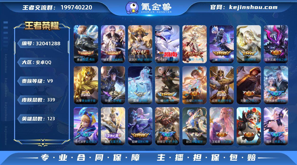 【至尊宝九州拓怪盗基德逐花归海,金标阿轲】安卓Q-V9-至尊星耀II段位-123英雄-339皮肤-2典藏-0珍品无双-1无双-1珍品传说-28传说-99史诗 【英雄全皮】:蒙恬全皮,影全皮 【荣耀典藏】:武则天英雄,李白鸣剑曳影,诸葛亮星域神启 【无双皮肤】:武则天神器明辉仪 【珍品传说】:马可波罗怪盗基德 【传说皮肤】:澜愿照九州拓,云缨幻光神枪,嬴政玄雷天君,庄周牧神诗旅,澜逐花归海,露娜霜月吟,马可波罗妄想实况,澜电玩雷克斯,干将莫邪画中仙,花木兰燃星之曲,蔡文姬花朝如约,赵云淬星耀世,王昭君乞巧织情,周瑜音你心动,小乔音你心动,铠绛天战甲,镜炽阳神光,虞姬启明星使,孙悟空零号赤焰,曜云鹰飞将,李信一念神魔,刘备时之恋人,貂蝉猫影幻舞,虞姬云霓雀翎,达摩黄金狮子座,梦奇胖达荣荣,后羿黄金射手座,宫本武藏地狱之眼 【限定皮肤】:李白谪仙醉月,狄仁杰阴阳师,赵云皇家上将,妲己时之彼端,孙尚香蔷薇恋人,阿轲迷踪丽影,钟无艳超时空战士,扁鹊奇幻香踪,吕布猎兽之王,元歌无心,夏侯惇朔风刀,甄姬落雪兰心,马可波罗妄想实况,狄仁杰魔术师,狄仁杰万华元夜,项羽海滩派对,老夫子醍醐杖,关羽冰锋战神,韩信飞衡,韩信傲雪梅枪,花木兰燃星之曲,亚瑟潮玩骑士王,孙悟空至尊宝,孙悟空零号赤焰,李元芳云中旅人,虞姬启明星使,杨戬潮玩骑兵,干将莫邪画中仙,雅典娜单词大作战,雅典娜黎明之约,蔡文姬繁星吟游,鬼谷子原初探秘者,百里守约朱雀志,弈星混沌棋,明世隐疑决卦,裴擒虎擒涛扼浪,云中君纤云弄巧,盾山御銮,上官婉儿梁祝,嫦娥拒霜思,嫦娥暖冬兔眠,西施玲珑珍味,蒙犽狂想玩偶喵,鲁班大师探海日志,镜匿光追影者,桑启海盐诗旅,暃星界游侠,戈娅驭风魔法,艾琳流音漫舞,司空震地狱燃心,阿古朵江河有灵,张良古海寻踪,蒙犽百解令,蒙恬荣光圣徽,高渐离...