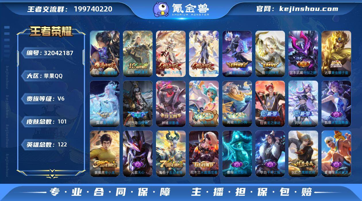 无二次-苹果Q-V6-尊贵铂金III段位-122英雄-101皮肤-9传说-29史诗 【传说皮肤】:马超神骥逐星野,后羿神树通天,司空震愿照山河定,澜愿照九州拓,澜逐花归海,露娜霜月吟,镜炽阳神光,达摩黄金狮子座,宫本武藏地狱之眼 【限定皮肤】:狄仁杰阴阳师,赵云皇家上将,高渐离玩趣恶龙,元歌无心,狄仁杰魔术师,达摩沙漠行僧,项羽海滩派对,兰陵王金庭之子,李元芳云中旅人,鬼谷子五谷丰年,沈梦溪大漠名商,裴擒虎李小龙,裴擒虎擒涛扼浪,鲁班大师探海日志,桑启海盐诗旅,妲己灵卜魔法,鬼谷子天穹祈灯 【年限皮肤】:司空震愿照山河定,澜愿照九州拓 【赛季限定】:达摩沙漠行僧,兰陵王金庭之子,沈梦溪大漠名商,李元芳云中旅人,桑启海盐诗旅,裴擒虎擒涛扼浪,鲁班大师探海日志,鬼谷子天穹祈灯,东皇太一噬灭天穹,太乙真人谧流熔炉,钟馗虚灵犬护,亚瑟荣光之誓 【战令限定】:妲己灵卜魔法,周瑜线条小狗,小乔线条小狗 【史诗皮肤】:钟馗锁墨魂,明世隐百晓客,周瑜线条小狗,小乔线条小狗,狂铁龙之律动,阿轲化蝶舞,妲己灵卜魔法,元歌无心,鬼谷子五谷丰年,裴擒虎李小龙,狄仁杰鹰眼统帅,孙策猫狗日记,阿轲节奏热浪,白起星夜王子,程咬金功夫厨神,李元芳逐浪之夏,刘禅天才门将,亚瑟心灵战警,诸葛亮黄金分割率,夏侯惇乘风破浪,刘邦德古拉伯爵,花木兰水晶猎龙者,李白千年之狐,曹操幽灵船长,妲己魅力维加斯,孙尚香水果甜心,廉颇地狱岩魂,狄仁杰魔术师,王昭君偶像歌手,甄姬冰雪圆舞曲,赵云皇家上将 【其他皮肤】:艾琳鹤鸣心笺,亚瑟荣光之誓,露娜命运加冕,张良灵野札记,苏烈春野闲踪,钟馗虚灵犬护,刘备浪漫序章,戈娅玫蓝誓约,明世隐景韶洛都,西施雪境奇遇,太乙真人谧流熔炉,苍苍林狼骑,东皇太一噬灭天穹,妲己灵卜魔法,鬼谷子天穹祈灯,后羿完美运算,曹操决胜大...