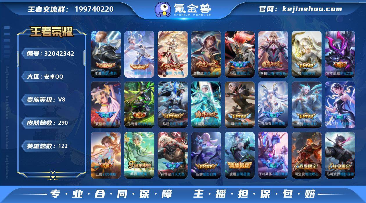 安卓Q-V8-122英雄-290皮肤-2典藏-0无双-0珍品传说-19传说-84史诗,印记11,银标2,铜标14,对抗路29段,打野29段,星传说2:未来机甲、幽冥之眼,v8 【荣耀典藏】:李白鸣剑曳影,伽罗最初的交响 【内测皮肤】:孙尚香蔷薇恋人,嬴政优雅恋人,狂铁特工战影 【传说皮肤】:孙尚香末日机甲,孙尚香异界灵契,宫本武藏地狱之眼,貂蝉猫影幻舞,孙悟空齐天大圣,虞姬启明星使,诸葛亮时雨天司,裴擒虎寅虎赤拳,李信山海炽霜斩,马超无双飞将,曜云鹰飞将,西施游龙清影,镜炽阳神光,夏洛特浮生妄,马超琥珀纪元,桑启鸣野蒿,云缨幻光神枪,澜愿照九州拓,杨玉环星之鸣奏 【限定皮肤】:蒙犽顽岩魄,大乔绒语心约,姜子牙天穹之誓,杨戬破阵退雄兵,狄仁杰阴阳师,赵云皇家上将,赵云百木心枪,墨子神迹守卫,嬴政优雅恋人,孙尚香蔷薇恋人,孙尚香异界灵契,庄周高山流水,芈月白晶晶,芈月幻夜卜梦,吕布猎兽之王,吕布御风骁将,元歌云间偶戏,元歌无心,马可波罗暗影游猎,狄仁杰魔术师,狄仁杰万华元夜,达摩星际陆战队,达摩沙漠行僧,项羽海滩派对,老夫子醍醐杖,老夫子航海奇遇记,关羽冰锋战神,程咬金演武夺筹,韩信傲雪梅枪,王昭君午后时光,兰陵王金庭之子,花木兰青春决赛季,花木兰默契交锋,亚瑟潮玩骑士王,孙悟空齐天大圣,李元芳云中旅人,虞姬启明星使,钟馗驱傩正仪,干将莫邪冰霜恋舞曲,鬼谷子原初探秘者,鬼谷子五谷丰年,诸葛亮时雨天司,苏烈千军破阵,百里玄策原初追逐者,梦奇顽趣,公孙离蜜橘之夏,公孙离玉兔公主,沈梦溪大漠名商,明世隐疑决卦,裴擒虎李小龙,裴擒虎寅虎赤拳,裴擒虎擒涛扼浪,狂铁电玩高手,米莱狄胡桃异想国,云中君纤云弄巧,李信山海炽霜斩,伽罗天狼溯光者,猪八戒西部大镖客,上官婉儿梁祝,嫦娥如梦令,嫦娥拒霜思,西施玲珑珍味,鲁班大师探海日志,桑启...