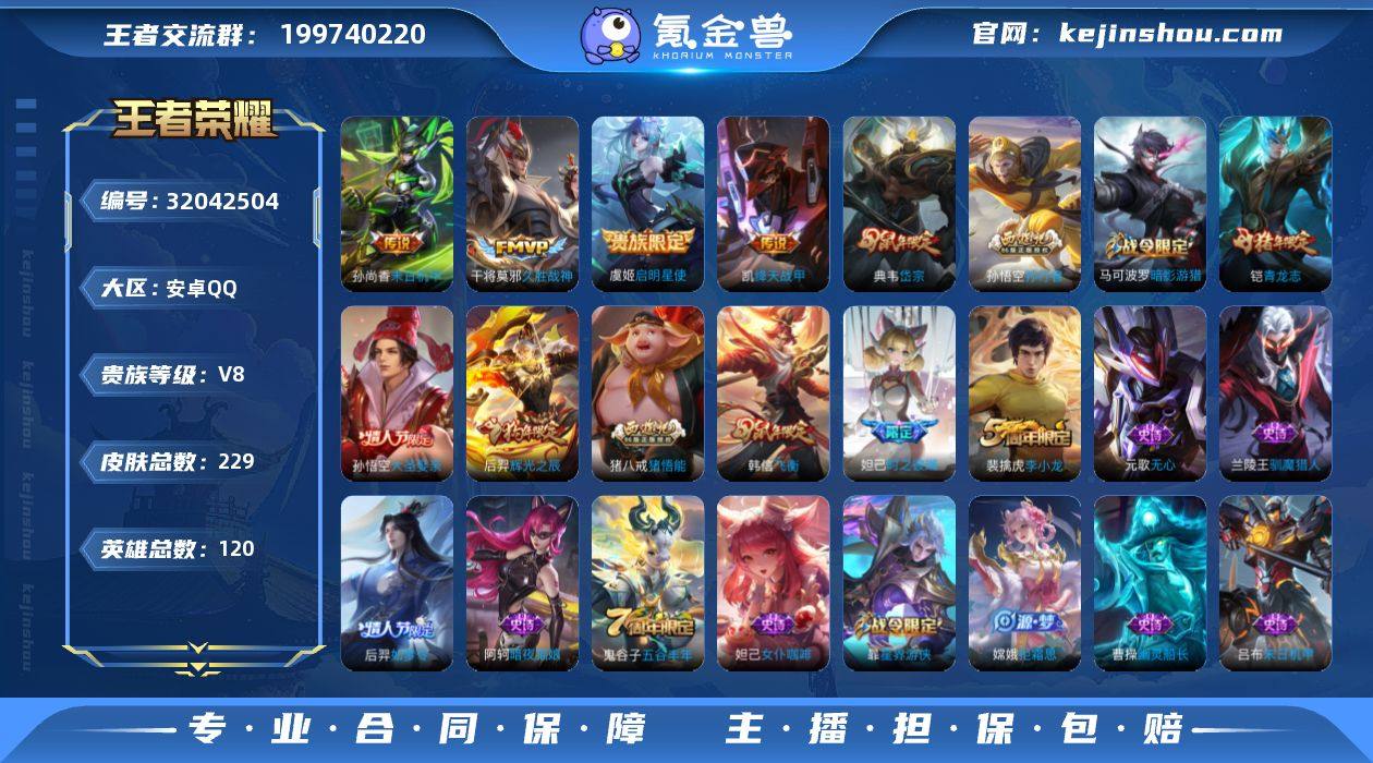 【229皮 1典藏 绛天战甲】:安卓Q-V8-至尊星耀II段位-120英雄-229皮肤-1典藏-0无双-0珍品传说-4传说-51史诗 【荣耀典藏】:武则天英雄 【内测皮肤】:孙尚香蔷薇恋人 【传说皮肤】:孙尚香末日机甲,虞姬启明星使,干将莫邪久胜战神,铠绛天战甲 【限定皮肤】:白起狰,狄仁杰阴阳师,虞姬凯尔特女王,赵云皇家上将,墨子神迹守卫,妲己时之彼端,孙尚香蔷薇恋人,鲁班七号狮舞东方,庄周高山流水,阿轲迷踪丽影,钟无艳超时空战士,扁鹊炼金王,周瑜赤莲之焰,元歌无心,夏侯惇朔风刀,甄姬落雪兰心,曹操烛龙,典韦岱宗,马可波罗暗影游猎,狄仁杰魔术师,狄仁杰万华元夜,达摩星际陆战队,项羽海滩派对,老夫子醍醐杖,程咬金演武夺筹,刘邦夺宝奇兵,韩信飞衡,兰陵王驯魔猎人,亚瑟潮玩骑士王,孙悟空大圣娶亲,孙悟空孙行者,牛魔御旌,后羿辉光之辰,后羿如梦令,后羿圣弓游侠,李元芳银河之约,李元芳云中旅人,虞姬启明星使,钟馗神迹守卫,钟馗驱傩正仪,杨玉环遇见飞天,女娲朔望之晖,干将莫邪真爱魔法,雅典娜单词大作战,蔡文姬繁星吟游,太乙真人饕餮,鬼谷子原初探秘者,鬼谷子五谷丰年,铠青龙志,苏烈千军破阵,沈梦溪星空之诺,沈梦溪大漠名商,明世隐疑决卦,裴擒虎李小龙,裴擒虎擒涛扼浪,米莱狄御霄,米莱狄胡桃异想国,云中君纤云弄巧,盾山御銮,猪八戒西部大镖客,猪八戒猪悟能,上官婉儿梁祝,嫦娥拒霜思,嫦娥暖冬兔眠,蒙犽狂想玩偶喵,桑启海盐诗旅,暃星界游侠 【年限皮肤】:铠青龙志,后羿辉光之辰,韩信飞衡,典韦岱宗 【赛季限定】:扁鹊炼金王,白起狰,夏侯惇朔风刀,曹操烛龙,狄仁杰万华元夜,老夫子醍醐杖,程咬金演武夺筹,牛魔御旌,李元芳云中旅人,虞姬凯尔特女王,钟馗驱傩正仪,太乙真人饕餮,鬼谷子原初探秘者,苏烈千军破阵,沈梦溪大漠名商,明世隐疑决卦,裴擒...