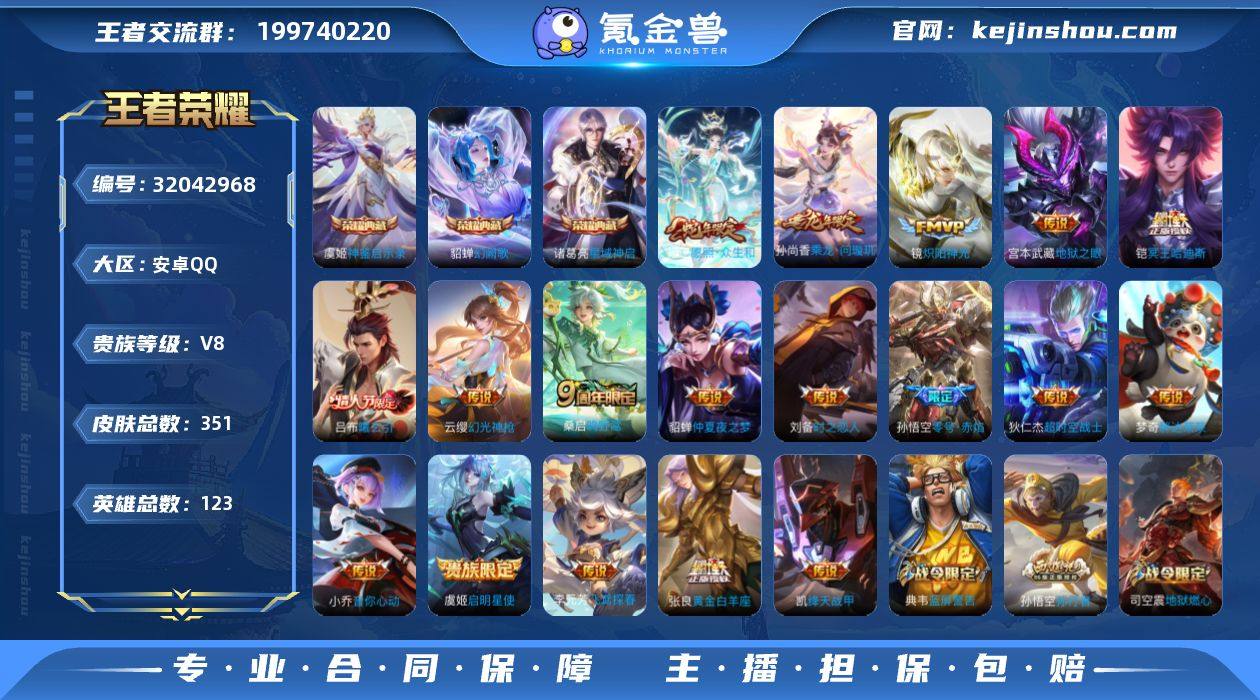 【妲己蛇限,3典藏18传说】:安卓Q-V8-永恒钻石I段位-123英雄-351皮肤-3典藏-0无双-0珍品传说-18传说-96史诗 【荣耀典藏】:诸葛亮星域神启,貂蝉幻阙歌,虞姬神鉴启示录 【内测皮肤】:孙尚香蔷薇恋人,嬴政优雅恋人,艾琳女武神,狂铁特工战影,干将莫邪胡桃夹子 【传说皮肤】:小乔音你心动,宫本武藏地狱之眼,狄仁杰超时空战士,貂蝉仲夏夜之梦,张良黄金白羊座,孙悟空零号赤焰,刘备时之恋人,李元芳飞鸢探春,虞姬启明星使,铠绛天战甲,梦奇胖达荣荣,镜炽阳神光,孙尚香乘龙问璇玑,吕布曦玄引,铠冥王哈迪斯,桑启鸣野蒿,云缨幻光神枪,妲己愿照众生和 【限定皮肤】:铠冥王哈迪斯,蒙犽顽岩魄,蔡文姬夏日便利店,大乔绒语心约,虞姬夏日便利店,杨戬破阵退雄兵,狄仁杰阴阳师,赵云皇家上将,墨子神迹守卫,嬴政优雅恋人,嬴政白昼王子,孙尚香蔷薇恋人,鲁班七号狮舞东方,庄周高山流水,阿轲迷踪丽影,吕布猎兽之王,周瑜赤莲之焰,元歌无心,夏侯惇朔风刀,典韦蓝屏警告,马可波罗暗影游猎,狄仁杰魔术师,狄仁杰万华元夜,达摩沙漠行僧,项羽海滩派对,老夫子醍醐杖,老夫子航海奇遇记,关羽冰锋战神,程咬金演武夺筹,刘邦夺宝奇兵,兰陵王驯魔猎人,兰陵王金庭之子,孙悟空大圣娶亲,孙悟空零号赤焰,孙悟空孙行者,牛魔御旌,后羿辉光之辰,后羿圣弓游侠,李元芳银河之约,李元芳匿光侦查者,虞姬启明星使,钟馗神迹守卫,钟馗驱傩正仪,杨玉环遇见飞天,女娲朔望之晖,干将莫邪胡桃夹子,干将莫邪真爱魔法,雅典娜单词大作战,蔡文姬繁星吟游,鬼谷子原初探秘者,鬼谷子五谷丰年,苏烈千军破阵,弈星混沌棋,公孙离蜜橘之夏,沈梦溪星空之诺,沈梦溪大漠名商,明世隐疑决卦,裴擒虎李小龙,裴擒虎擒涛扼浪,狂铁御狮,米莱狄御霄,云中君纤云弄巧,盾山御銮,猪八戒西部大镖客,猪八戒猪悟...