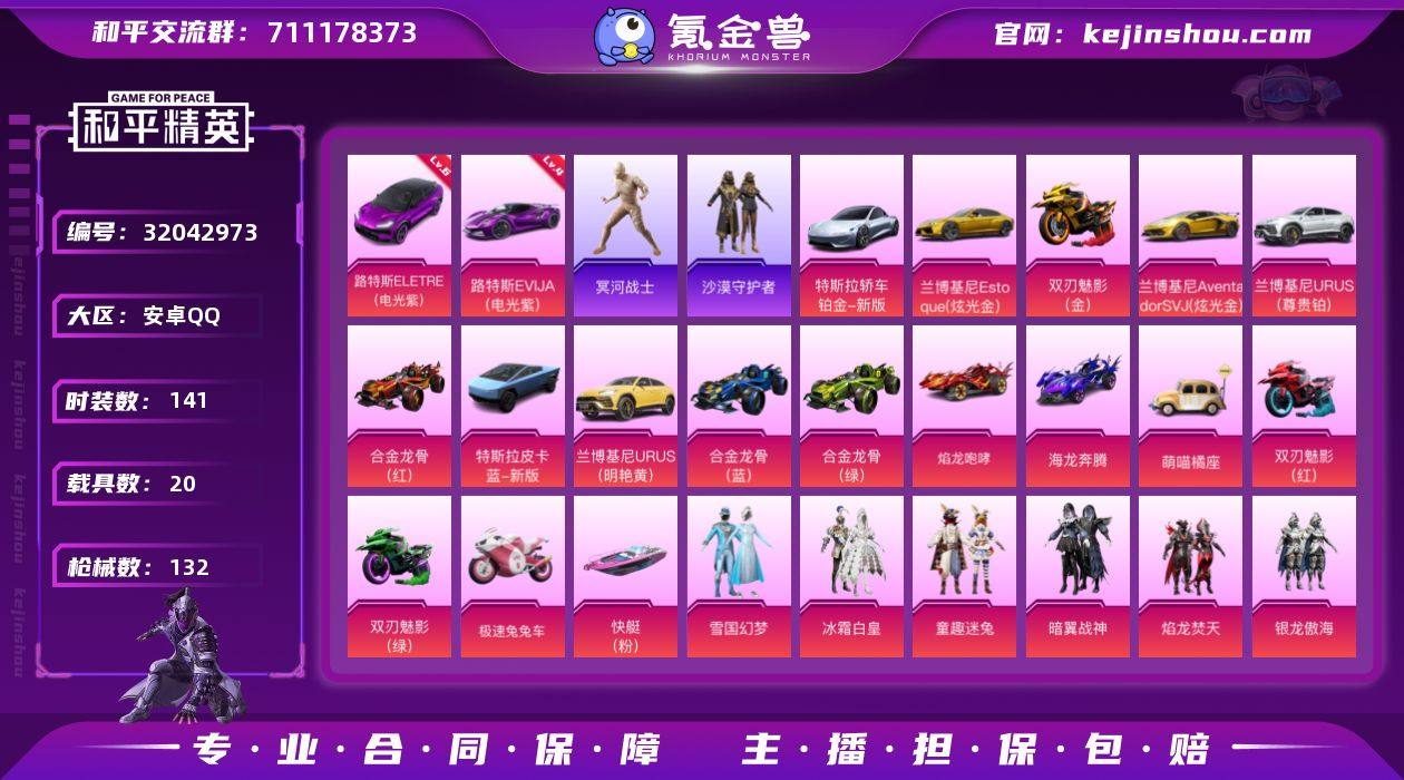 【极品和平号27粉装17特效枪19载具木乃伊洛天依2号机m762冷魅冰骑】:安卓 手Q-27粉装-17特效枪-19载具-115839热力值-3印记-141套装-132枪皮(禁止加好友以及发言处罚生效) 【稀有载具】:特斯拉Roadster(尊享铂),特斯拉Cybertruck(荒芜蓝),兰博基尼Aventador SVJ(炫光金),兰博基尼Estoque(炫光金),兰博基尼URUS(明艳黄),兰博基尼URUS(尊享铂),路特斯EVIJA(电光紫),路特斯ELETRE(电光紫),合金龙骨(红),合金龙骨(蓝),合金龙骨(绿),焰龙咆哮,海龙奔腾,萌喵橘座,双人摩托-双刃魅影(红),双人摩托-双刃魅影(绿),双人摩托-双刃魅影(金),极速兔兔车,空客H135-蔚蓝之翼,快艇-塞莎KL27(霓虹粉) 【稀有载具等级】:路特斯ELETRE(电光紫)(六级),路特斯EVIJA(电光紫)(四级) 【特效枪等级】:AKM-百合蜜语(七级),SCAR-L-童趣迷兔(四级),SCAR-L-青春物语(一级),M416-风花雪月(五级),M762-冷魅冰骑(六级),UZI-绮梦青鸾(四级),UMP45-恐龙拽拽(一级),UMP45-雪国精灵(五级),Kar98K-巳巳如意(五级),AWM-橘柚倾心(六级),AWM-焰龙焚天(二级),SKS-碧影闪光(一级),Mini14-荧光虫舞(一级),SLR-暗夜玫瑰(二级),DP-28-幻梦音符(二级),MG3-洛神天依(五级),平底锅-林间仙鹿(一级) 【优质套装】:粉装-雪国幻梦,粉装-冰霜白皇,粉装-童趣迷兔,粉装-暗翼战神,粉装-焰龙焚天,粉装-银龙傲海,粉装-骨龙祭渊,粉装-暗夜玫瑰,角色-闪耀迪迦,角色-赛罗闪耀型,粉装-齐天大圣,角色-洛天依,粉装-沙场疾风,粉装-俏雪含霜,粉装-吟月归客,角色-2号机款机体服,粉装-蓝莓炮弹,粉装-碧影闪光,粉装-薄荷物语,粉装-百合蜜语,粉装-恐龙拽拽,粉装-幻梦音符,粉装-绚丽摇曳,粉装-橘柚倾心,粉装-冷魅冰骑,粉装-赤焰黑爵,粉装-紫电风暴 【稀有套装】:角色-猎影月神 【...